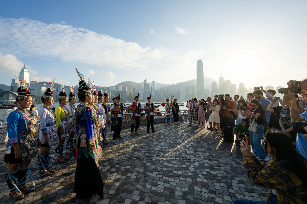 “村超”代表团于10日抵港,其表演团队在尖沙咀一带举行了贵州民族服饰快闪活动。比赛当日,榕江方面为观众带来了非遗表演,而香港明星队的多位艺人则演绎了数首经典老歌,引得现场阵阵欢呼。