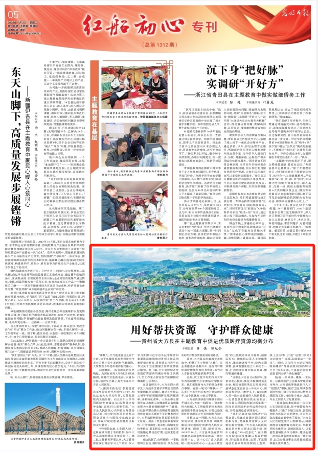 畅通一张网络,建强一支队伍。以提升医疗卫生服务管理质量为导向,大方县统筹推进医疗人才“组团式”帮扶、医疗卫生领域东西部协作和三级公立医院对口帮扶县级医院工作,持续缩小城乡、地区、专业之间的人才配置差距。