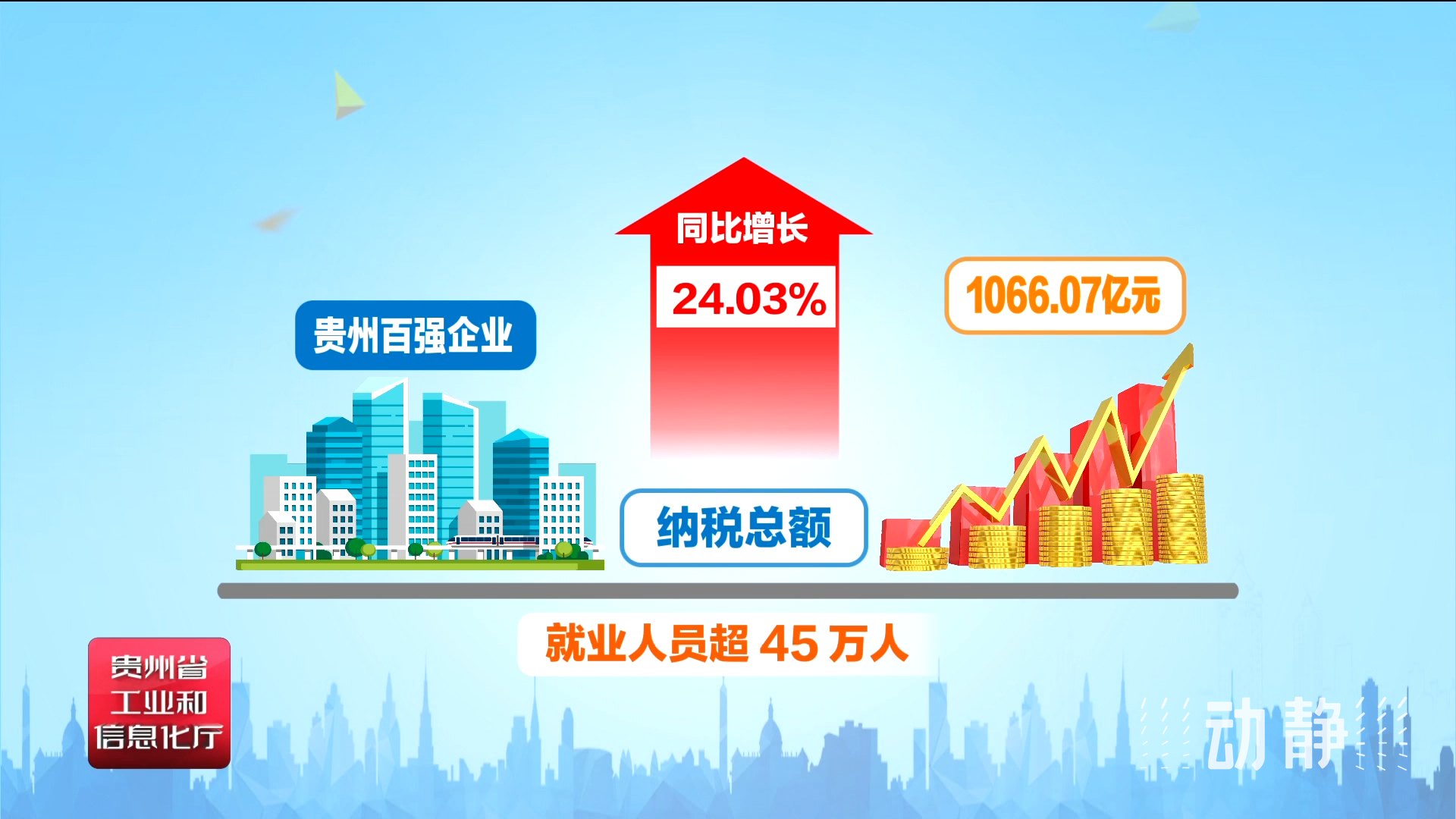 2022年,贵州百强企业实现营业收入11366.97亿元,同比增长7.44%;共投入研发资金143.93亿元,同比增长30.19%;纳税总额达到1066.07亿元,同比增长24.03%;就业人员超45万人。