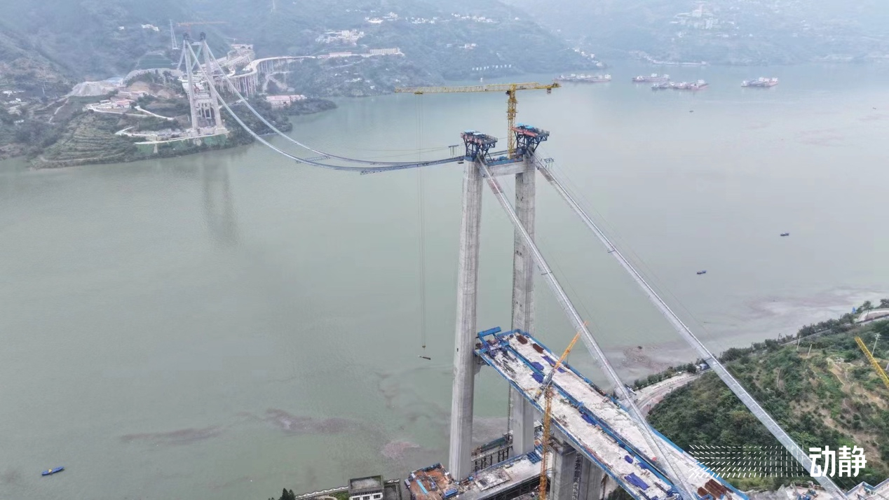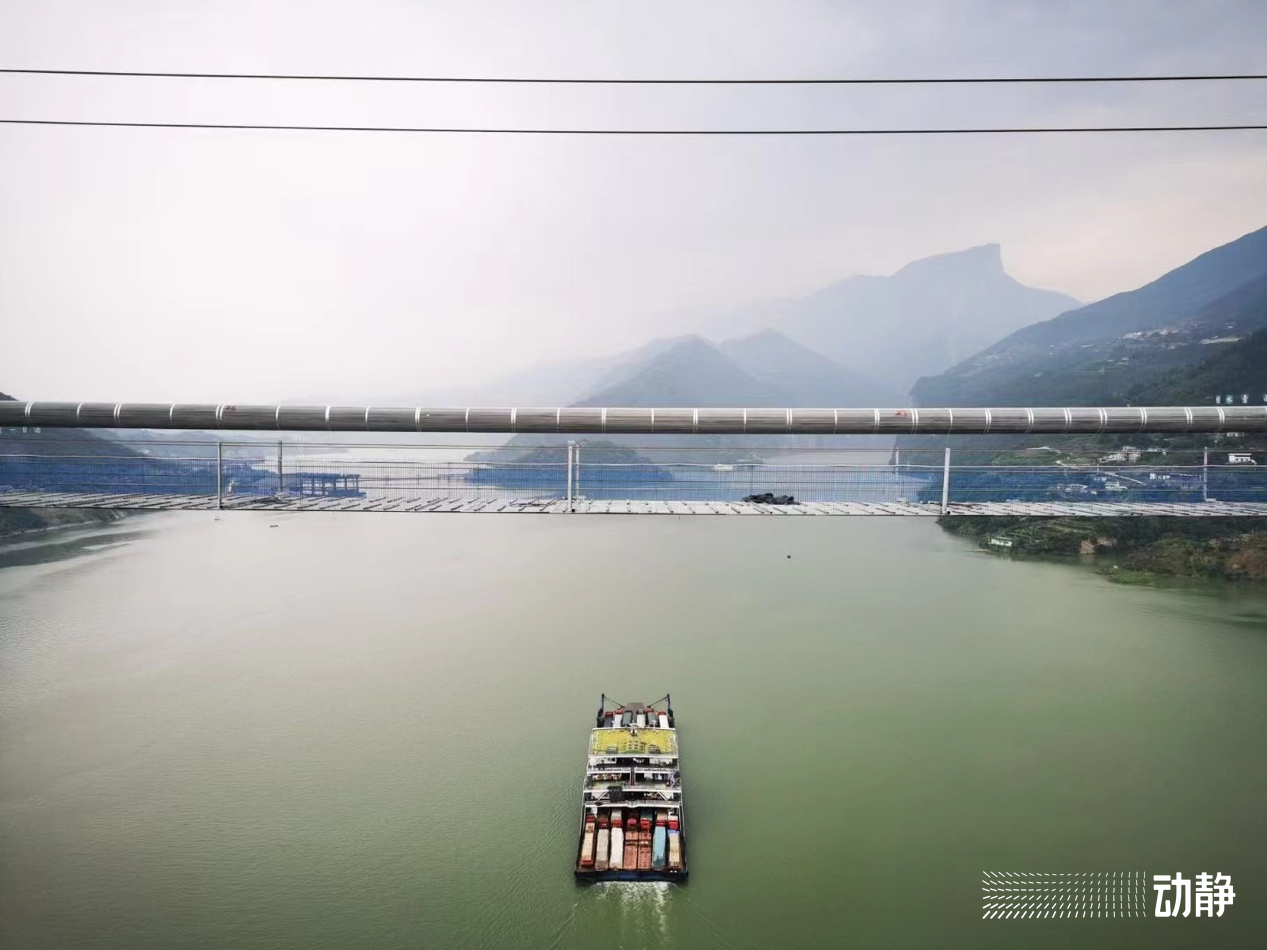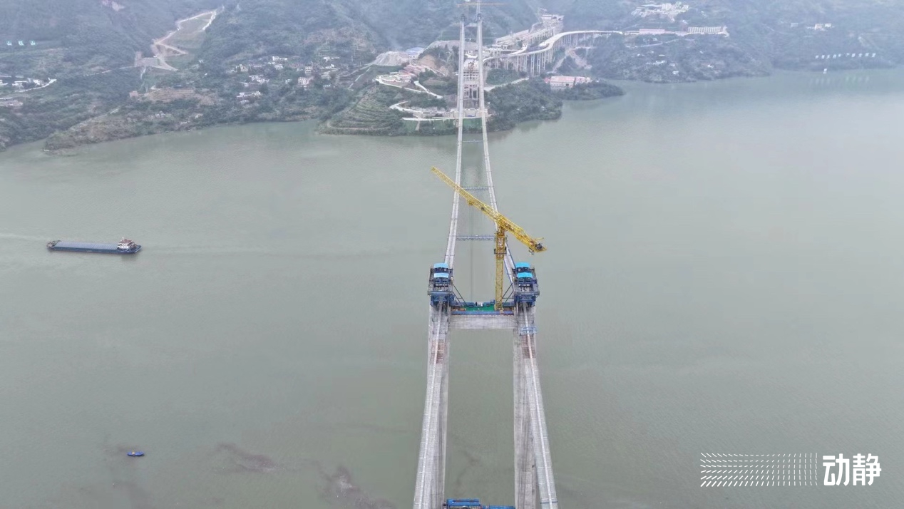 近日,位于重庆奉节的白帝城长江大桥主缆架设完成。