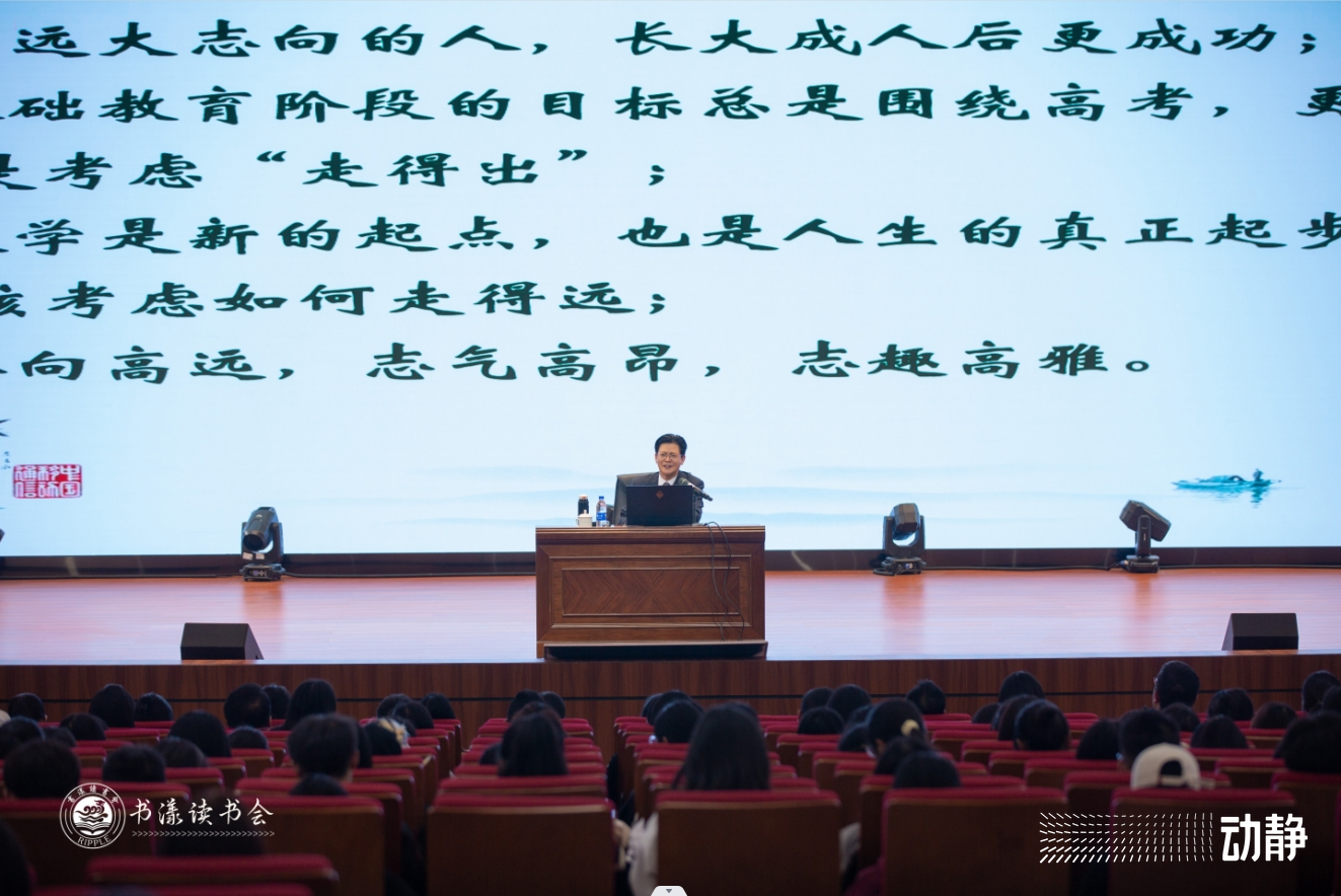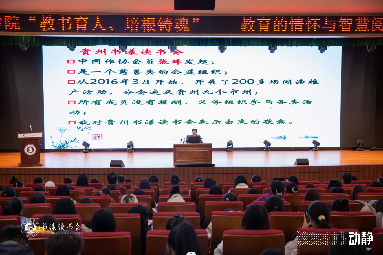 期间,陈立群校长讲述了他在贵州支教的故事,或有趣、或无奈、或感动、或痛惜,透过一个个山水故事,真真切切让人感悟到“爱与责任”,原来,真的有人在矢志不渝地践行。“不为功利,不求功德,只为心愿”,陈立群校长以身示范:教书是职业,是事业,更应是志业!陈立群校长还在讲座中谈及了阅读的重要性,“物质可以匮乏,精神必须充盈;衣食可以不富,灵魂必须高贵!”,读书足以怡情,足以傅彩,足以长才。他说:“万千学子浸润书漾之际,校园阅读春天来临之时,贵州教育快速发展之日!”