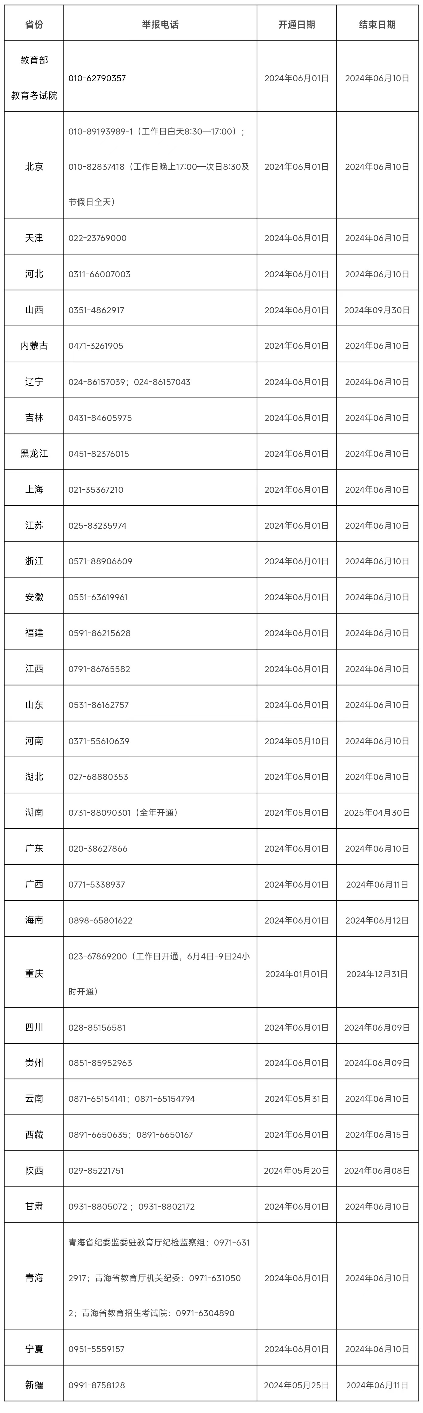 近日,教育部统一公布了教育部以及各省(区、市)2024年的高考举报电话,欢迎广大考生、家长及社会各界人士及时举报反映涉及2024年高考的问题线索。教育部及各省(区、市)将会同有关部门根据举报线索第一时间核查处理,坚决维护高考公平公正。
