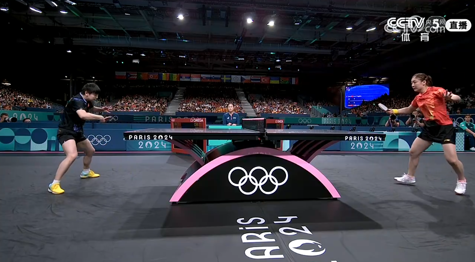 乒乓球女单金牌争夺战中