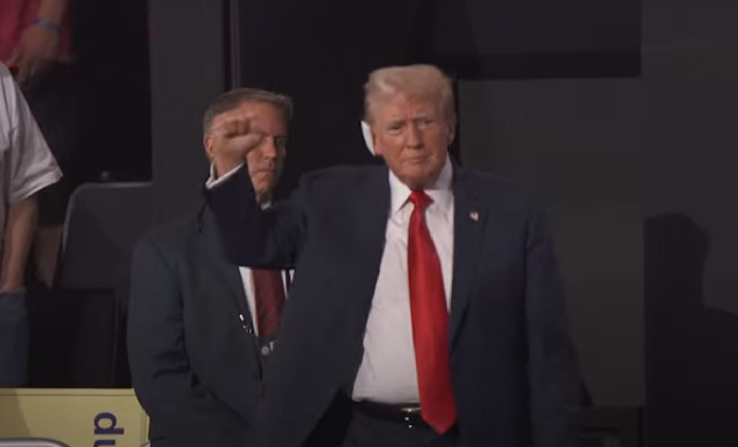 这是特朗普在13日经历竞选集会枪击事件之后,首次出现在大型集会活动现场。