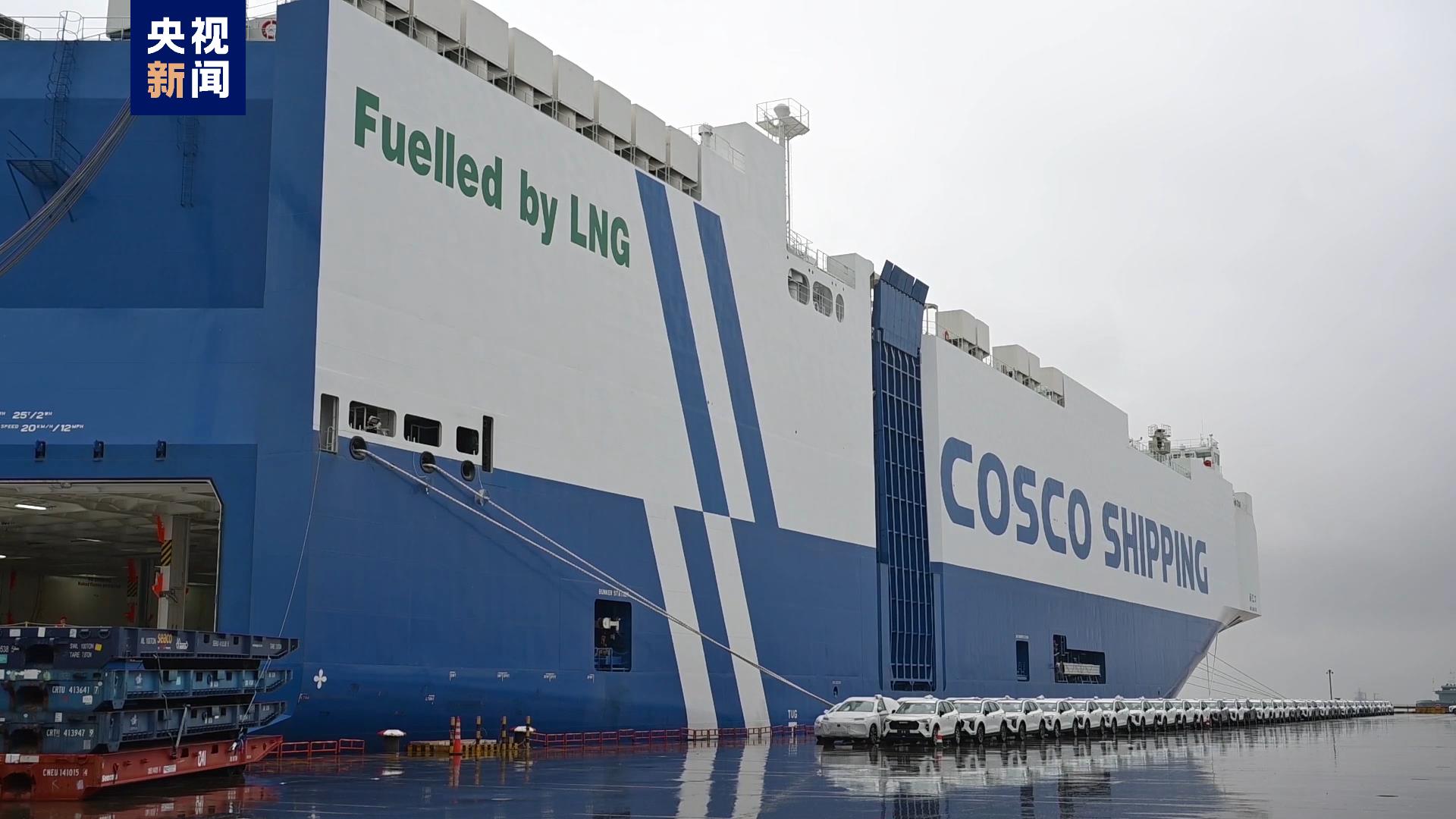7月12日,7500车位LNG双燃料新型汽车滚装船“闽江口”号轮首航靠泊上海外高桥港区海通码头,4853辆国产品牌汽车从码头前沿缓缓开上新船,等待开启波斯湾航程。两天后,同批交付的姊妹船“辽河口”号轮也将靠泊海通码头,装载4132辆商品车前往欧洲。