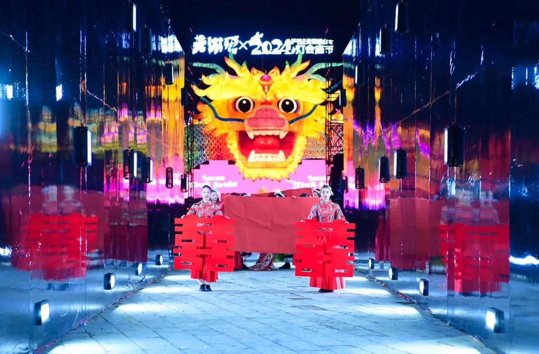 灯会庙市不仅在演艺方面有着亮眼表现,更以“中国年,贵州韵”为内核,从龙年生肖出发,融合贵州多民族风情文化和贵州山地文化,打造独一无二的贵州年景,让广大市民在这里感受到浓烈的贵州年味。