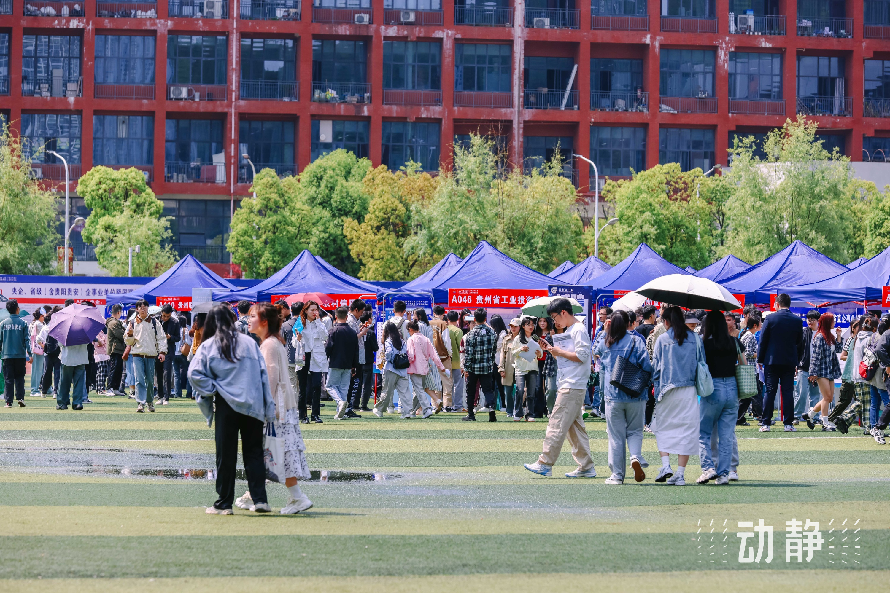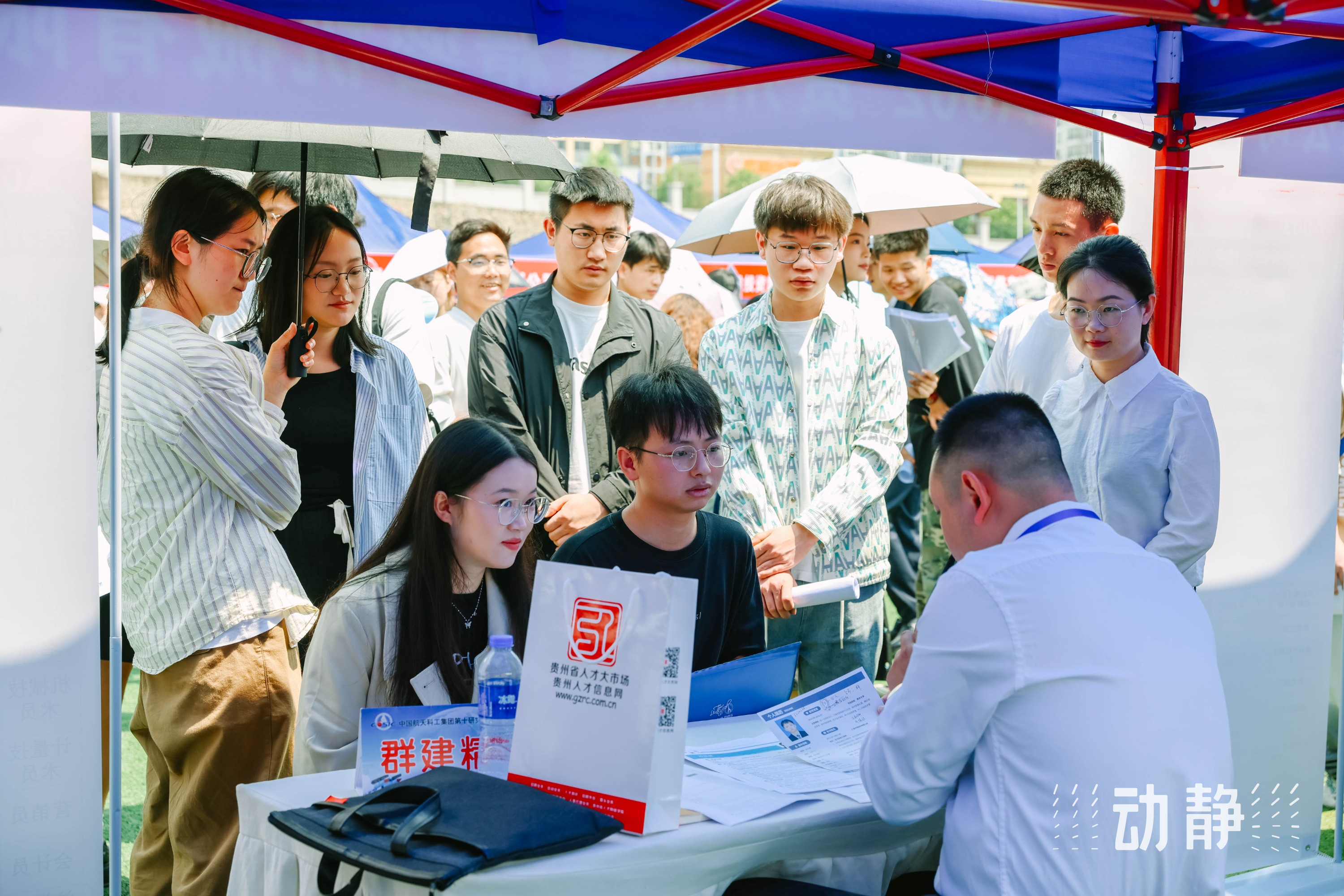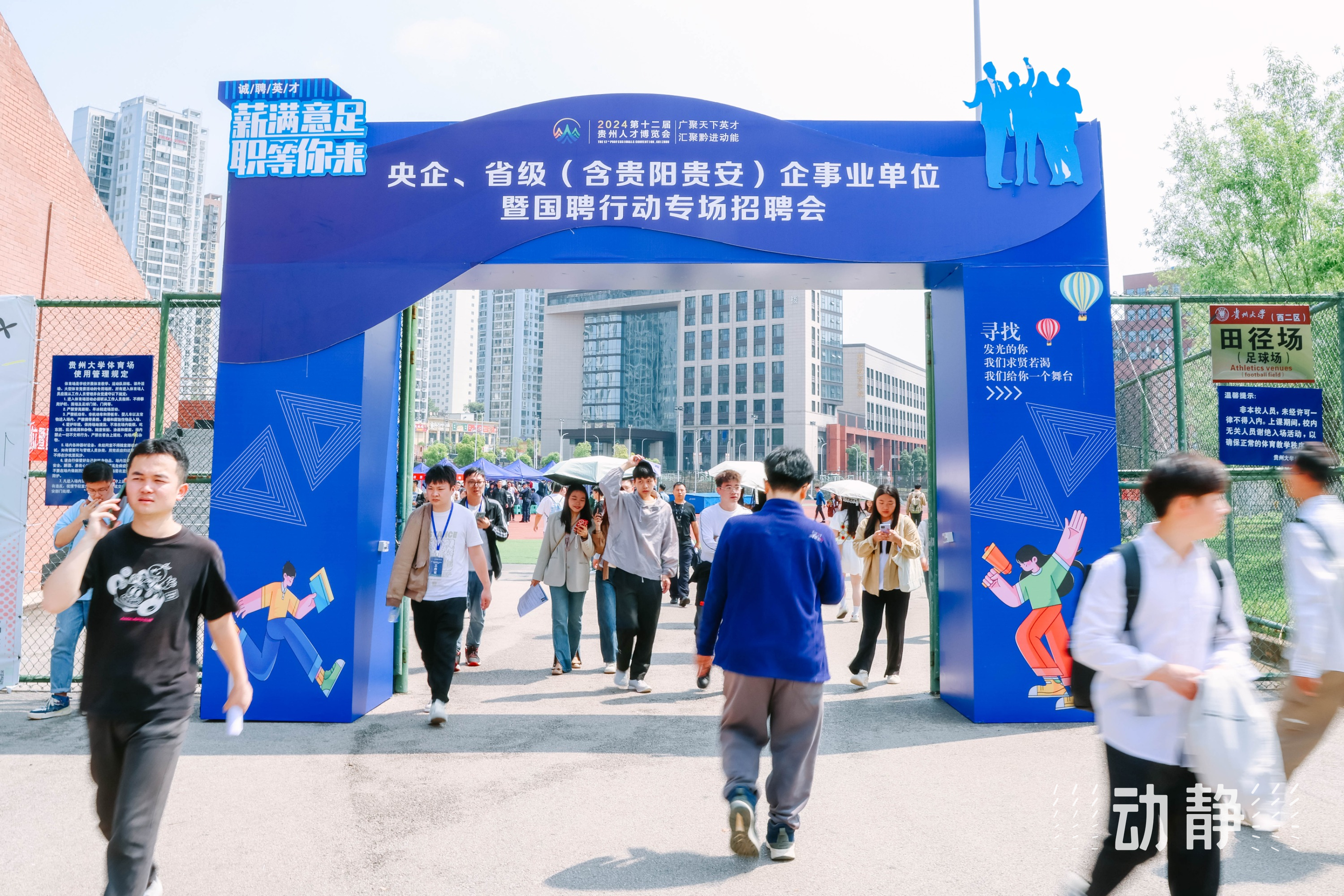 4月27日,第十二届贵州人才博览会央企、省级(含贵阳贵安)企事业单位暨国聘行动专场招聘会在贵州大学举办,现场求职正火热进行中。