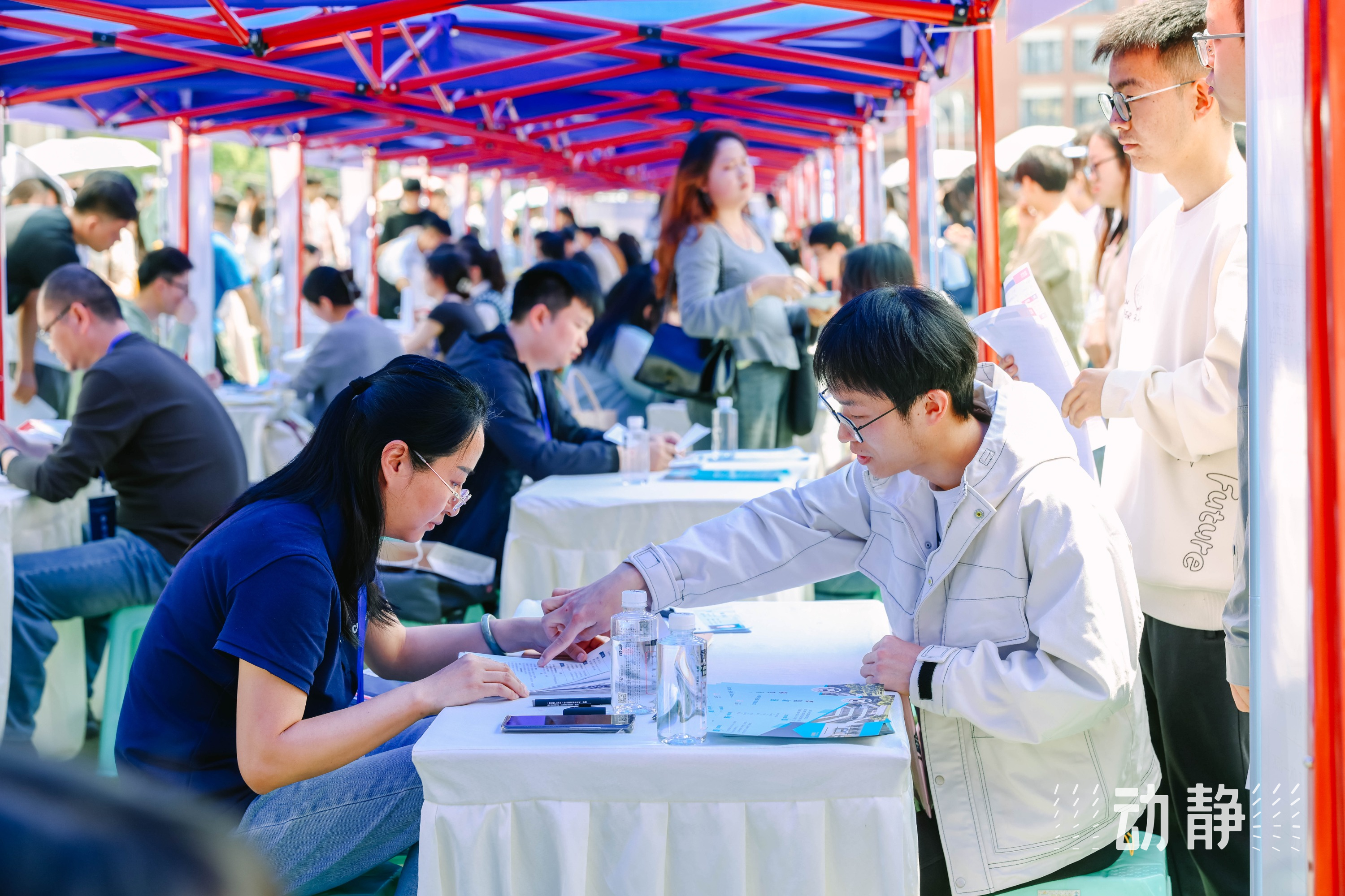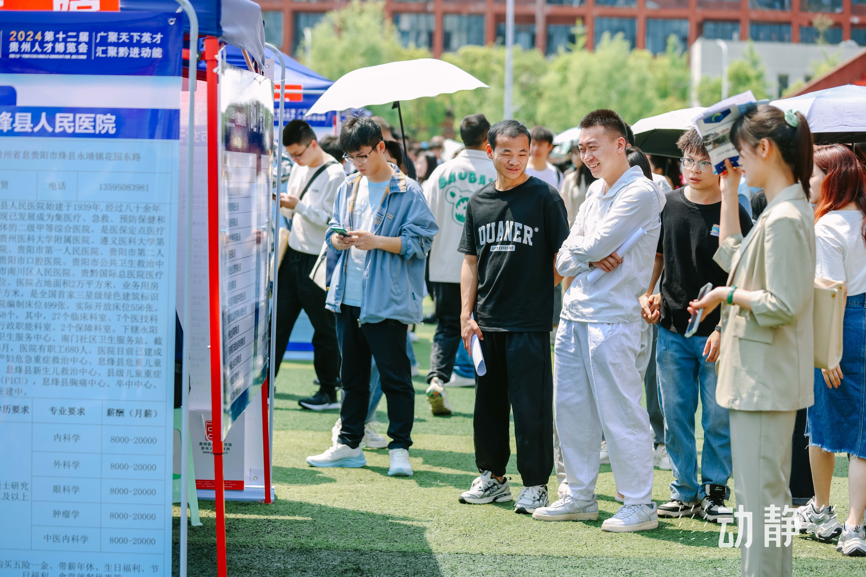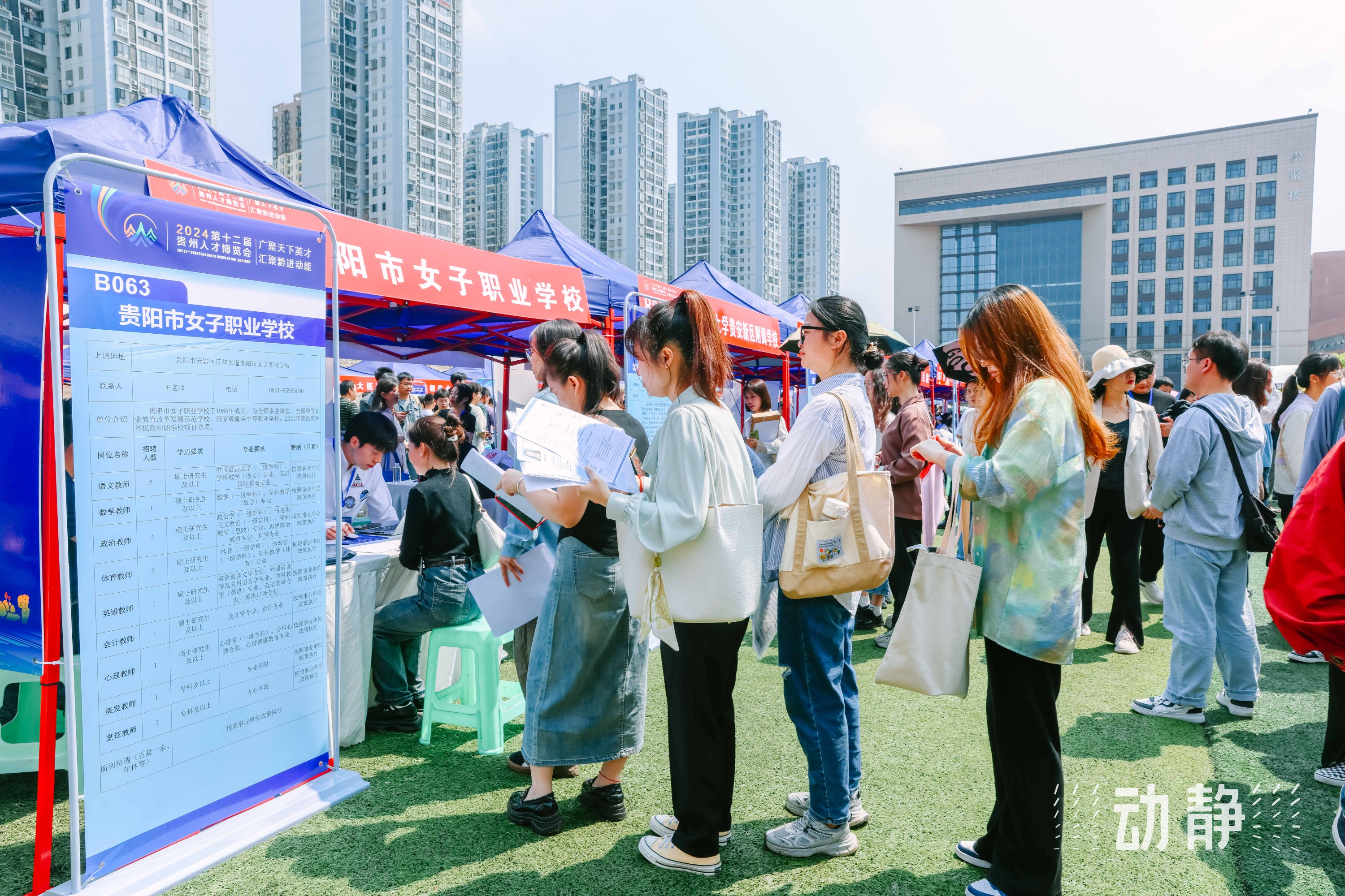 4月27日,第十二届贵州人才博览会央企、省级(含贵阳贵安)企事业单位暨国聘行动专场招聘会在贵州大学举办,现场求职正火热进行中。