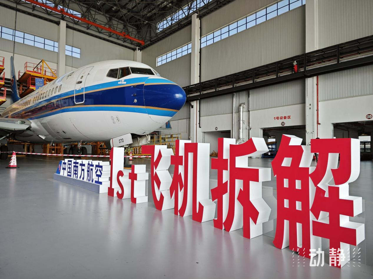 民航贵州辖区首架飞机拆解工作2日在中国南方航空贵州航空有限公司飞机维修厂展开。此次拆解的是一架经历20年飞行的波音737客机,拆解工作将退役飞机化整为零,大部分零部件可通过检测适航认证后,再次回到航材市场,其余零部件进入其他行业被循环利用或流入市场,从而实现退役飞机剩余价值的再利用。