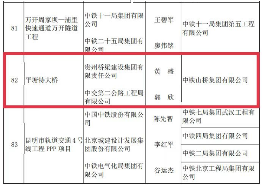 1月13日,中国建筑业协会2022—2023年度第一批中国建设工程鲁班奖(国家优质工程)评选名单揭晓,贵州平塘特大桥项目名列其中,是我省唯一获奖项目。据了解,本次揭晓的名单中共有119个工程项目。