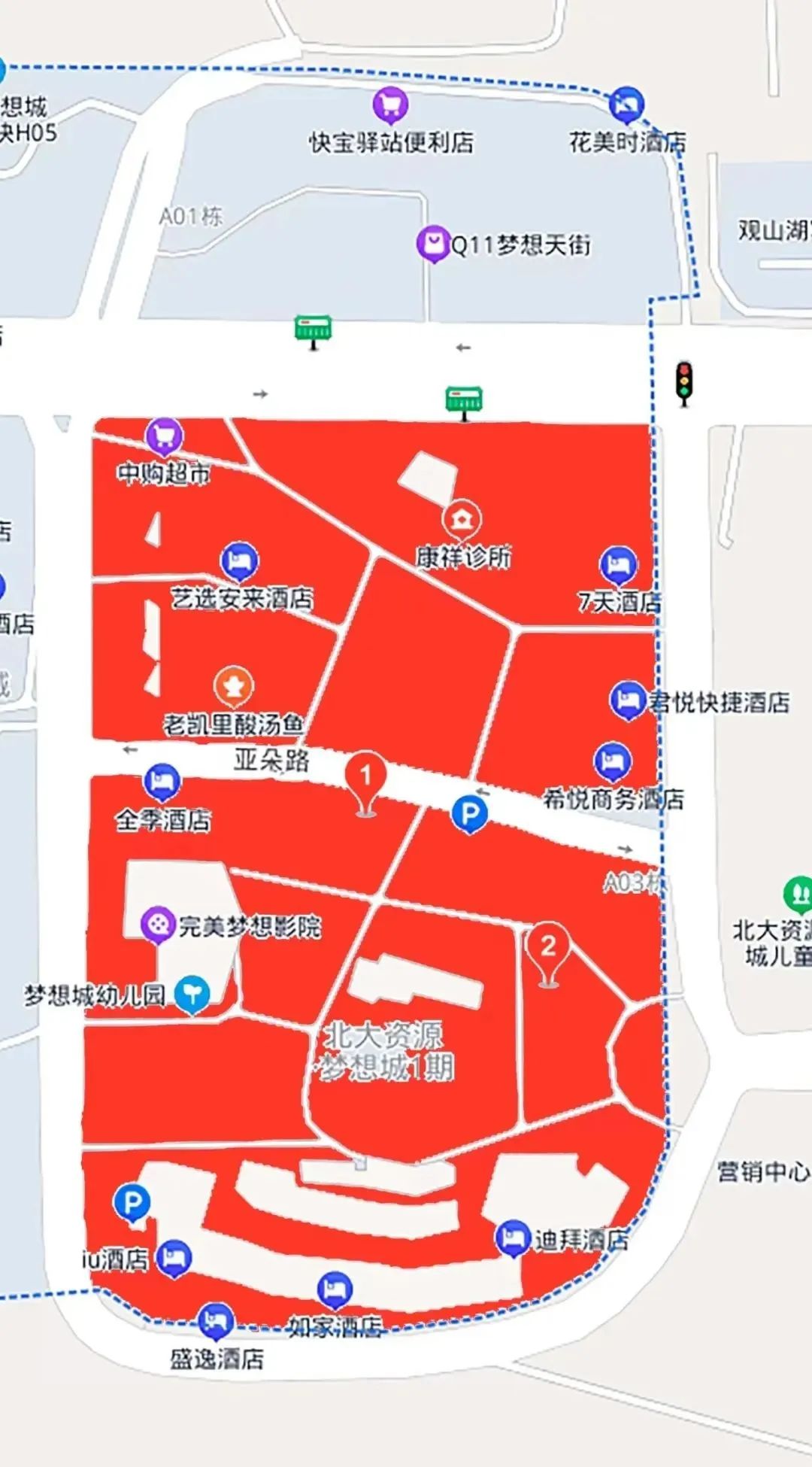 观山街道,以亚朵路为中轴的相邻地块(如图所示红色区域)