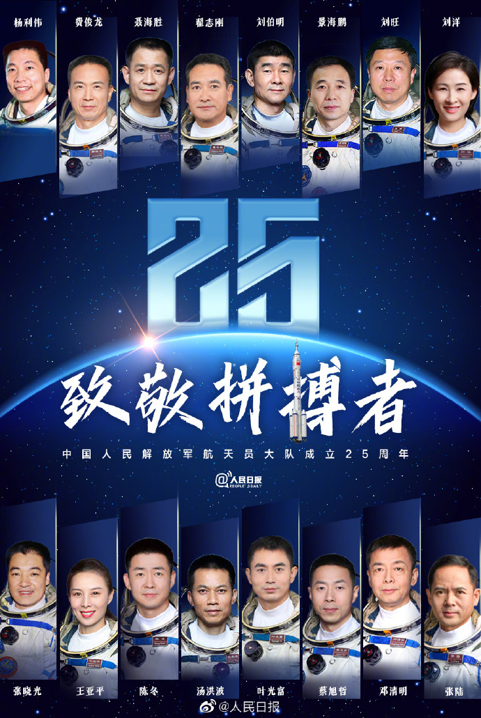 25年前的今天,中国人民解放军航天员大队正式成立。从神舟五号到神舟十五号,已有16名中国航天员飞上太空。