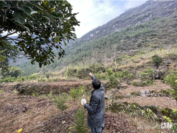 车辆一直往前,来到了这条道路的终点——石笋村寨子组,我们刚下车便看到村民杨勤勇正在采摘自家的柑橘。记者看到,这里背临悬崖,面向芙蓉江,土地被一块块的石头分割成碎片,大面积的柑橘和柚子种植在地里,一些还未采摘的柑橘依然挂在枝头。