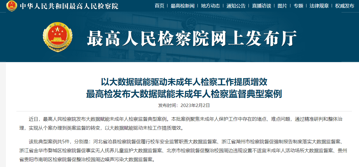 近日,最高人民检察院发布大数据赋能未成年人检察监督典型案例,贵州1例入选。