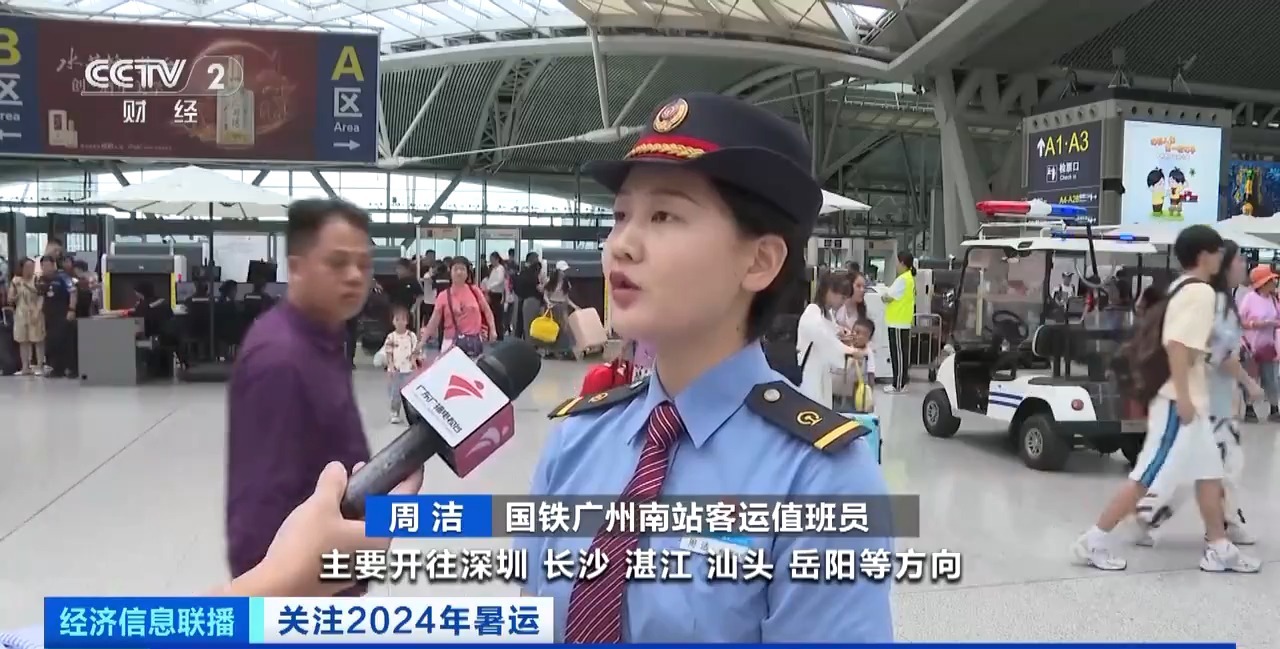 国铁广州南站客运值班员 周洁:精准实施“一日一图”,包括在高峰出行时段,加开列车22对,主要开往深圳、长沙、湛江、汕头、岳阳等方向。