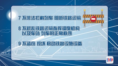 3.不在铁路线路上放置障碍物,不击打列车或向铁路抛掷物品;