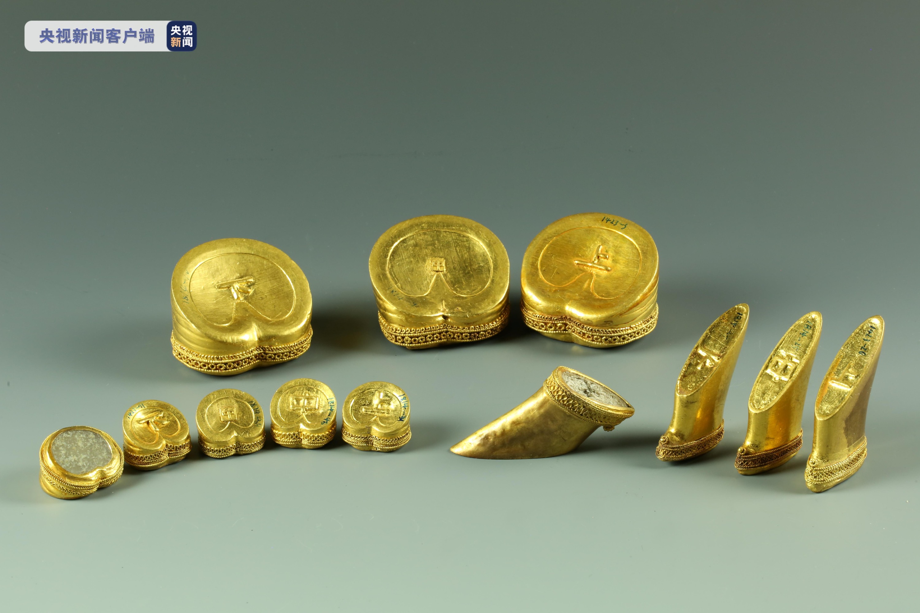 展览展出海昏侯国遗址出土珍贵文物128件(组),包含金器、玉器、青铜器等多个品类,其中包括备受瞩目的马蹄金、麟趾金,珍贵的鎏金青铜编纽钟更是成套外展,一套14件纽钟大小不一、排列有序,前13件均有精美鎏金纹饰,再现西汉礼乐制度。另外,展品中的青铜当卢、鎏金青铜当卢、筒形青铜器、青铜量、青铜博山炉、青铜剑等8件珍贵文物刚刚修复完成,是首次对外展出。