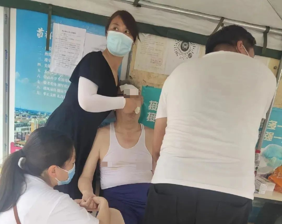 边大爷外出回家走到社区门口处突然中暑晕厥