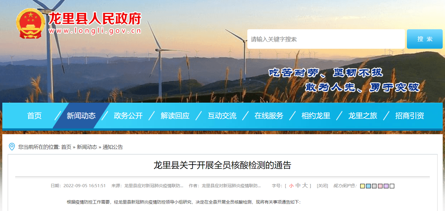 根据疫情防控工作需要,经龙里县新冠肺炎疫情防控领导小组研究,决定在全县开展全员核酸检测,现将有关事项通告如下: