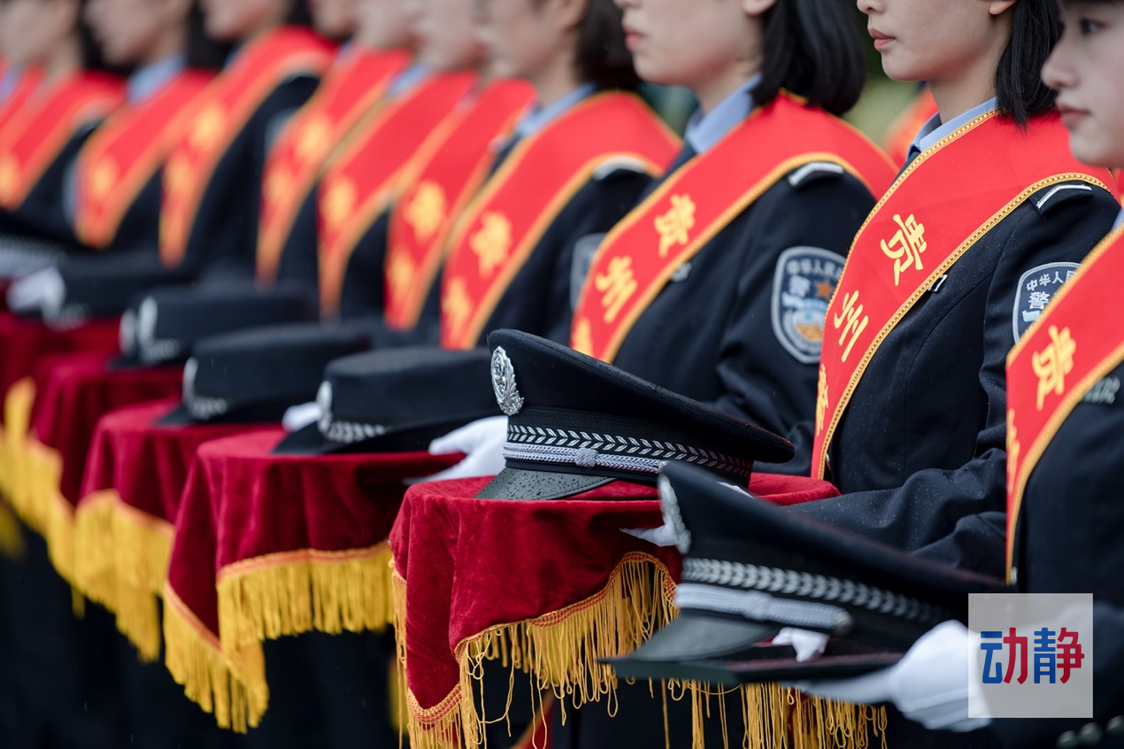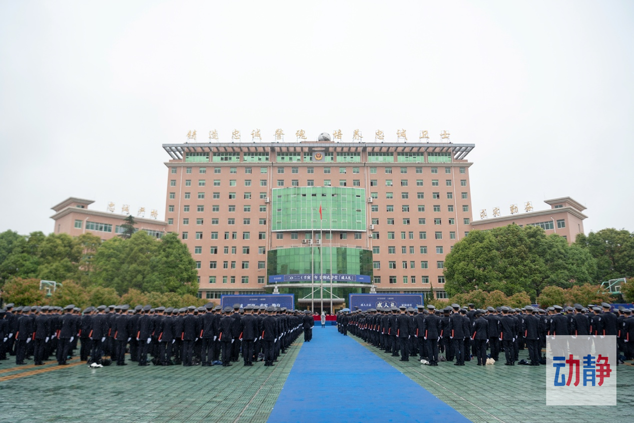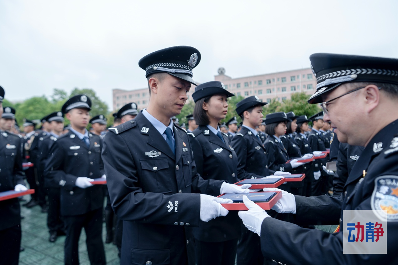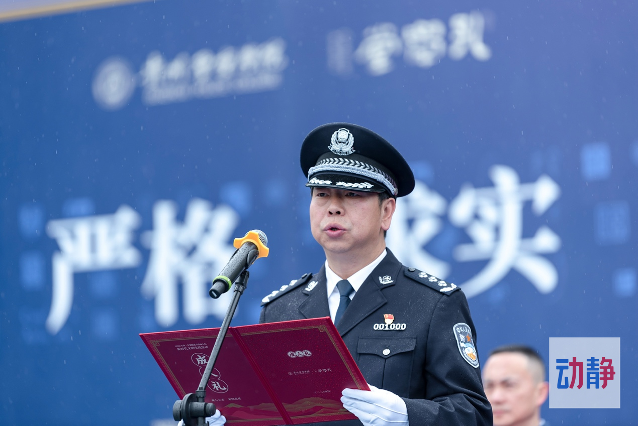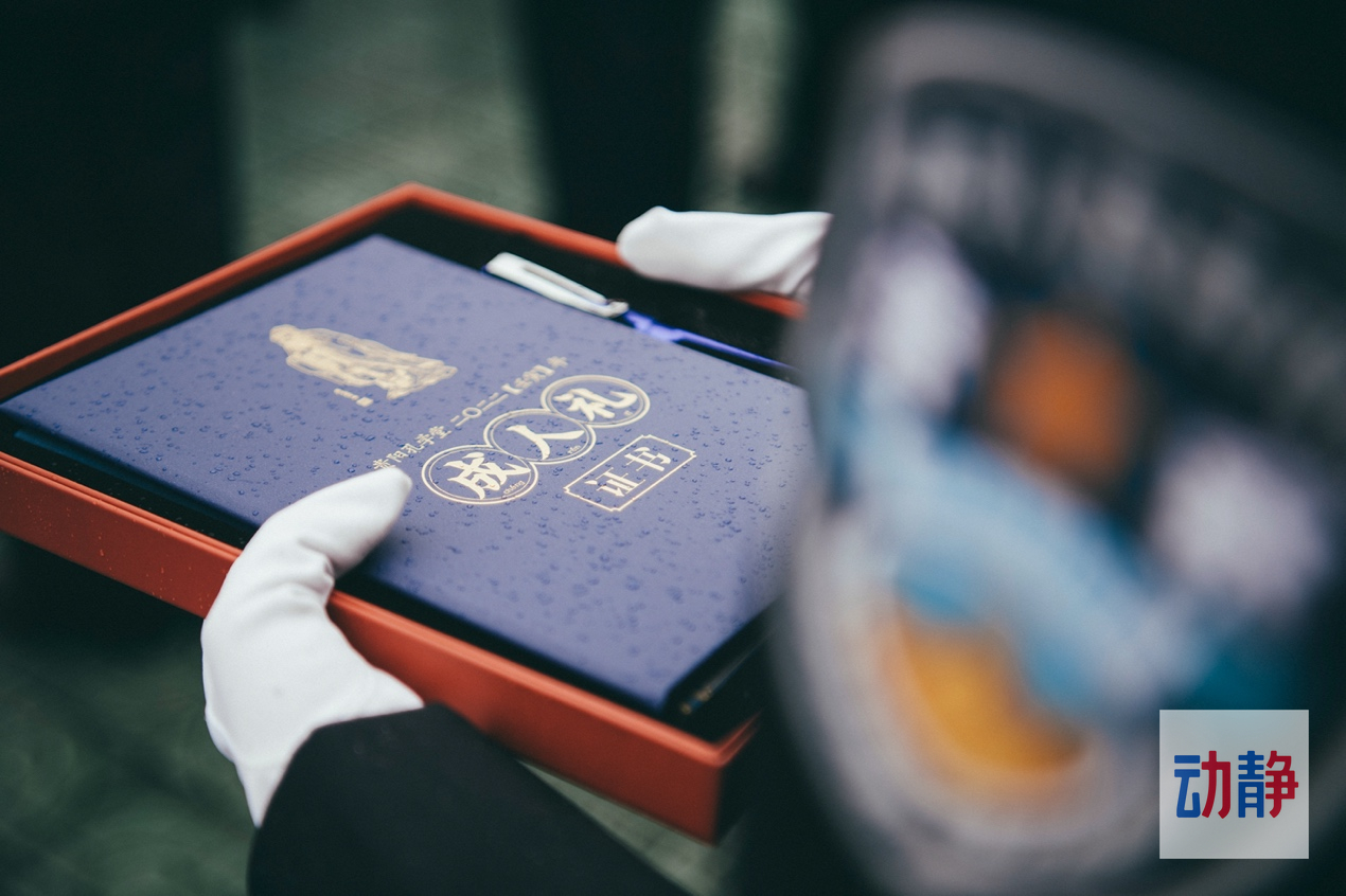 “头顶有国徽,心中有人民。”仪式现场,天下着濛濛细雨,学子们帽檐、肩头,以及胸前佩戴的团徽虽被雨水润湿,但这群年轻的“未来警官”个个精神抖擞,声音洪亮,庄严而郑重地聆听长者聆训,随后齐诵《立身歌》,正冠礼、三敬礼、接授成人证书,完成从“孺子” 跨入成年人的角色转变。