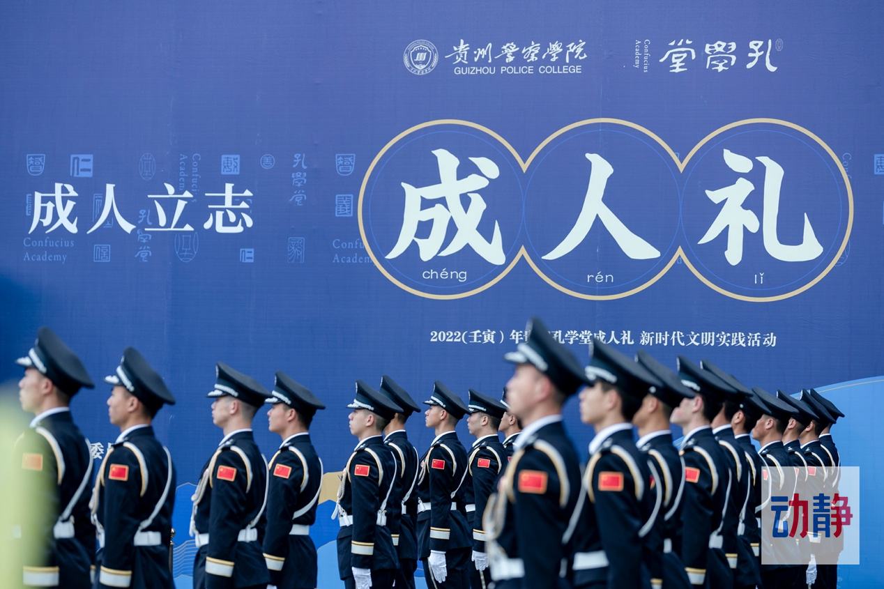 5月23日,贵阳孔学堂2022年成人礼走进贵州警察学院,1300名在读大一学生迎来了一场特别的青春洗礼。