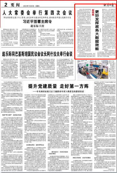要深化研究拓展应用空间。政务大数据是维度多元、立体丰富的信息富矿,不同角度、深度挖掘利用会产生不一样的应用价值。要持续深入探索政务大数据在宏观调控决策、经济社会发展分析、投资监督管理、财政预算管理、数字经济治理等方面的应用空间,进一步提高政府管理水平和服务效能。当前,我国经济恢复向好仍面临不少难题和挑战,各地各部门要进一步加强政务大数据应用,使其成为能及时反映区域及行业发展情况的“听诊器”“扫描仪”,成为助企纾困的“贴心人”“好帮手”,助力经济持续恢复。