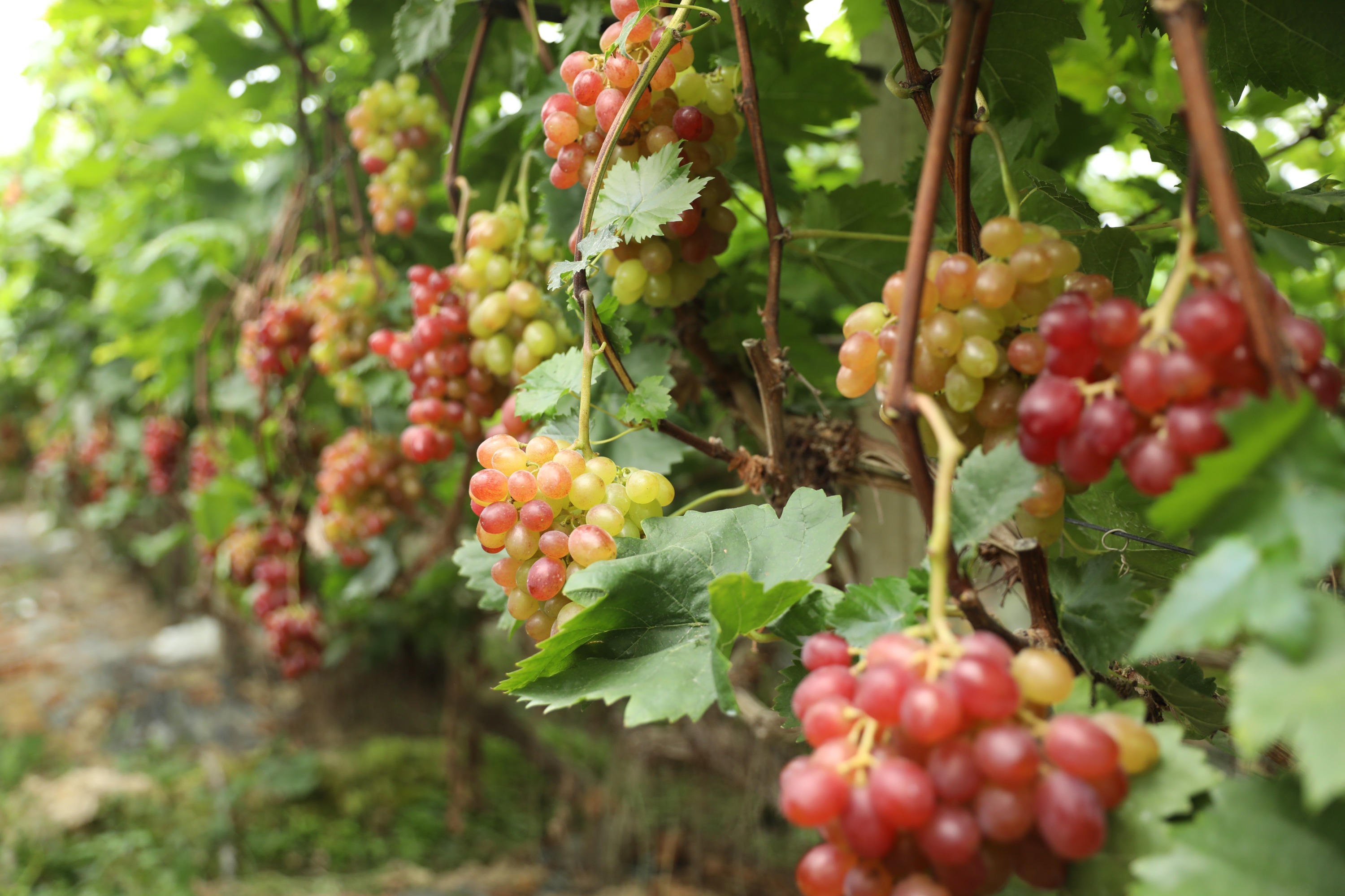 敦寨镇三合村架寨水源充足,土地肥沃,发展提子种植产业已有10多年,提子园采用“以点带面、休闲观光、采摘体验”的经营模式开展精品提子种植,目前提子现已进入盛果期,品种主要为维多利亚,美人指、温克、无核夏核等几种品种