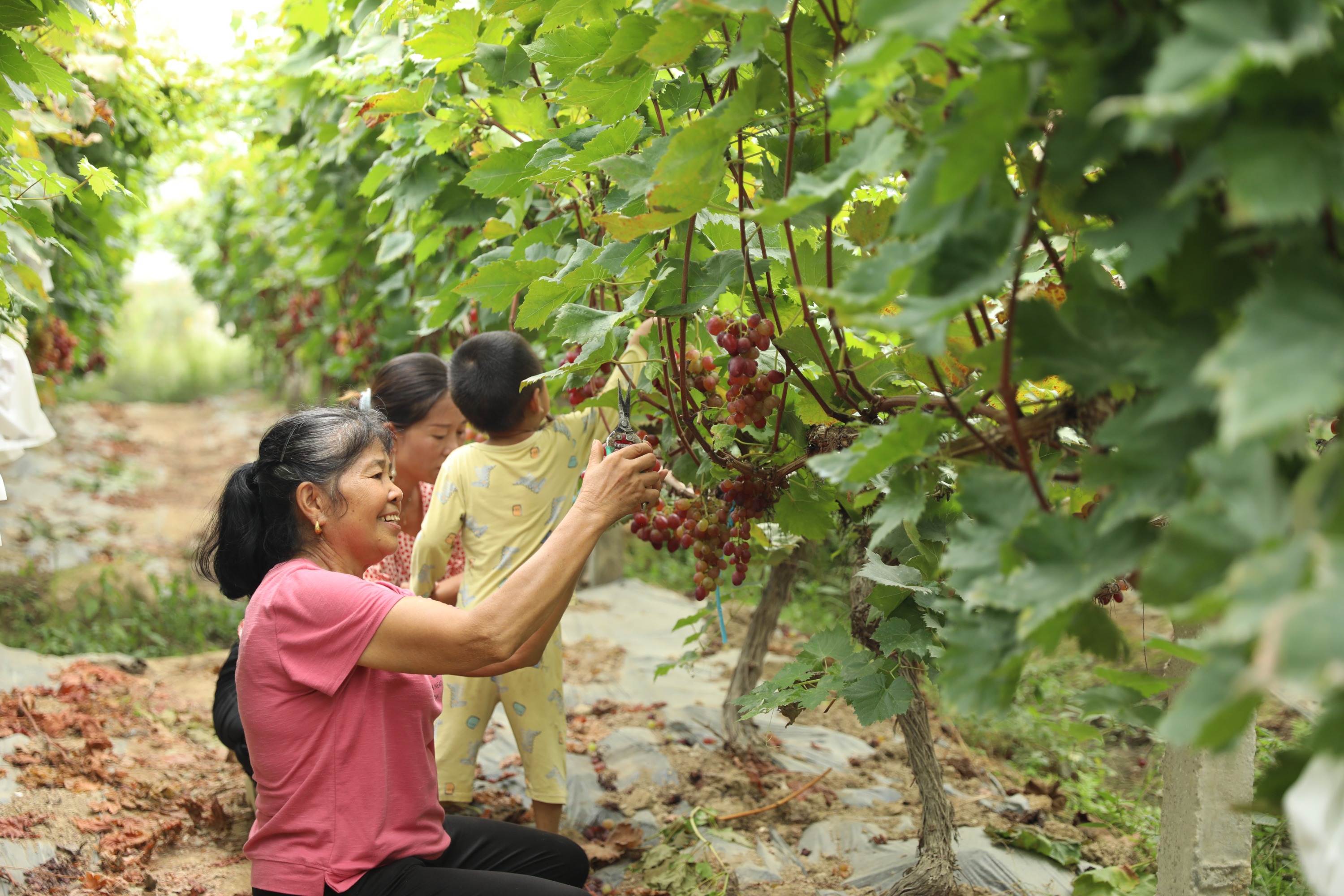 在三合村架寨提子种植户龙立敏的提子园里,一串串饱满圆润的提子散发出阵阵醉人芳香,向果农们传递着丰收的信号。