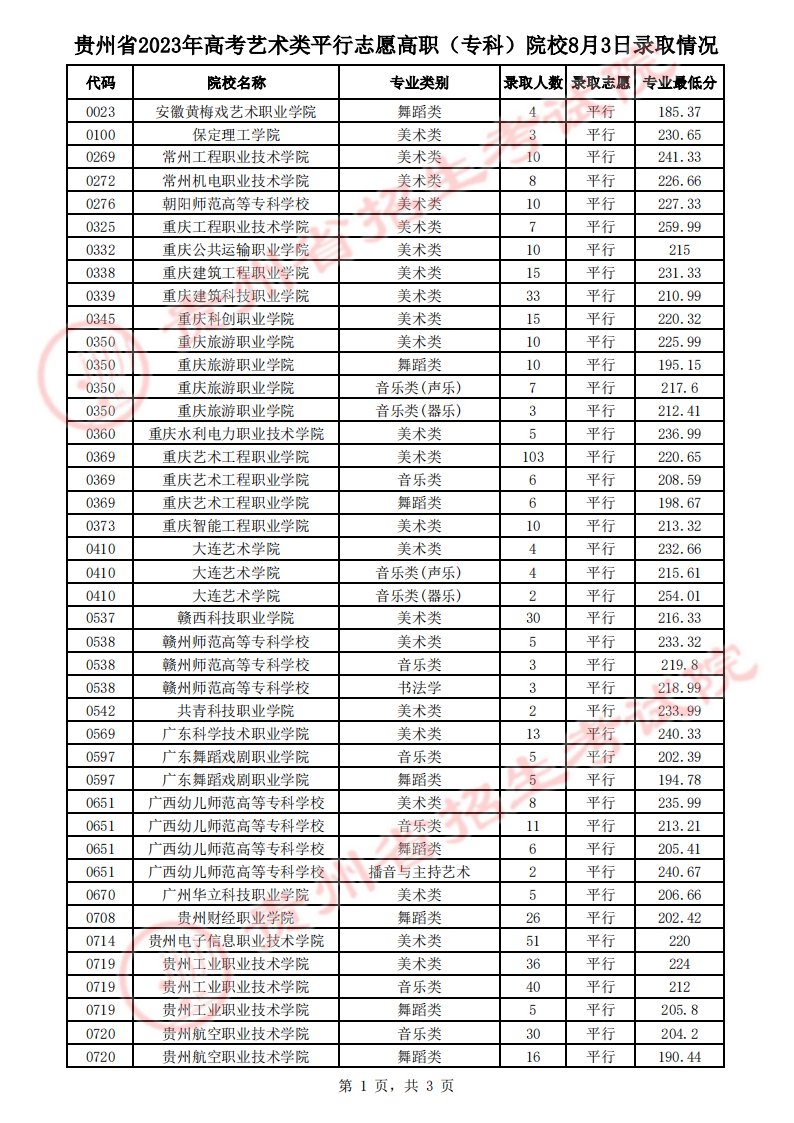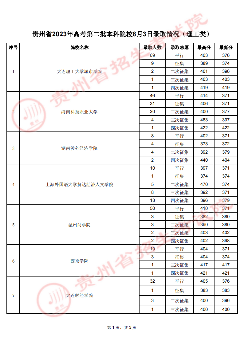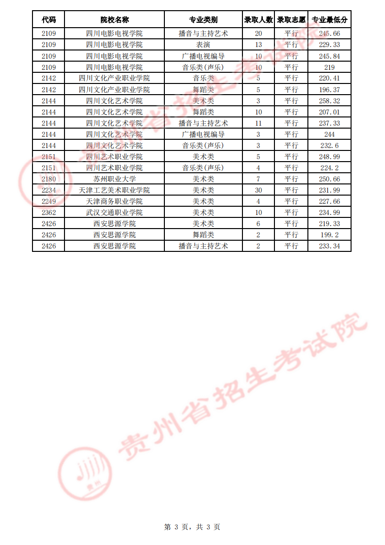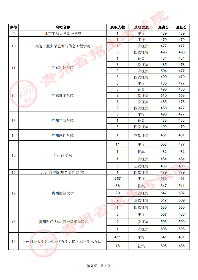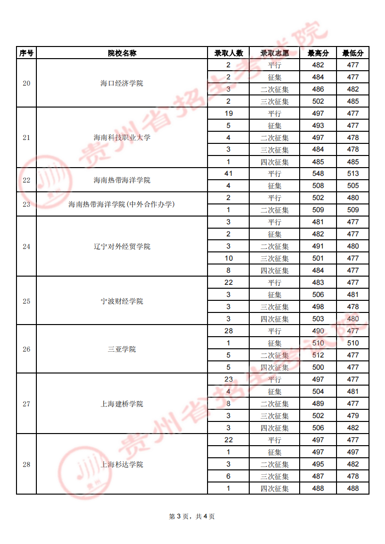 贵州高考二本少数民族预科征集志愿平行投档情况