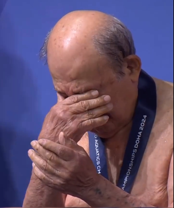 2024多哈游泳世锦赛正在进行中。其间一位百岁老者,吸引了全世界目光。