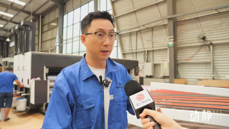 杨军告诉记者,公司给一道长通做光伏产业配套服务,在贵州,这个产品是首例这么大尺寸的纸箱,长度达到了4米,宽接近1.2米,通过采购新的设备,专门做这个项目。