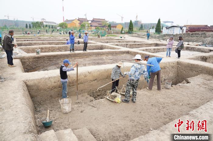 据悉,该遗址的考古发掘工作自2017年启动。眼下,第四处遗址点的考古发掘工作正有序推进,并于近日新发现了十余根古木桩。