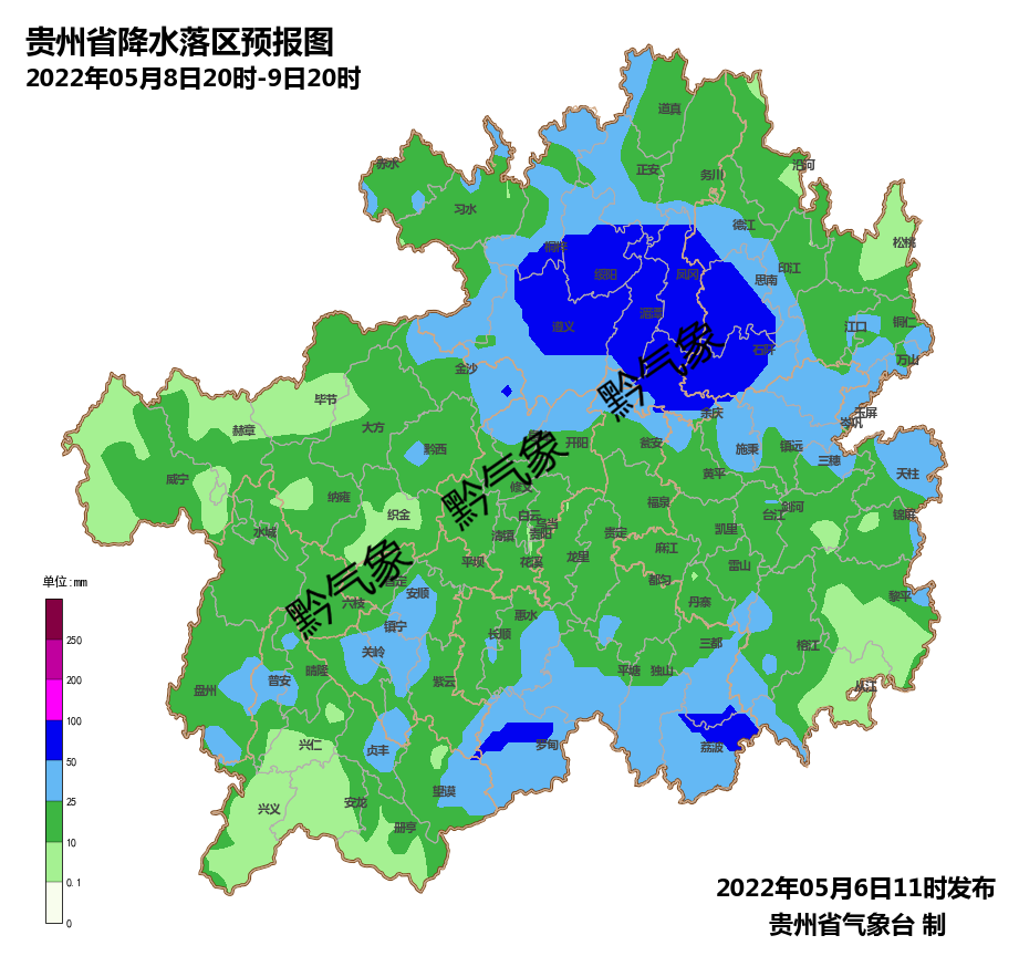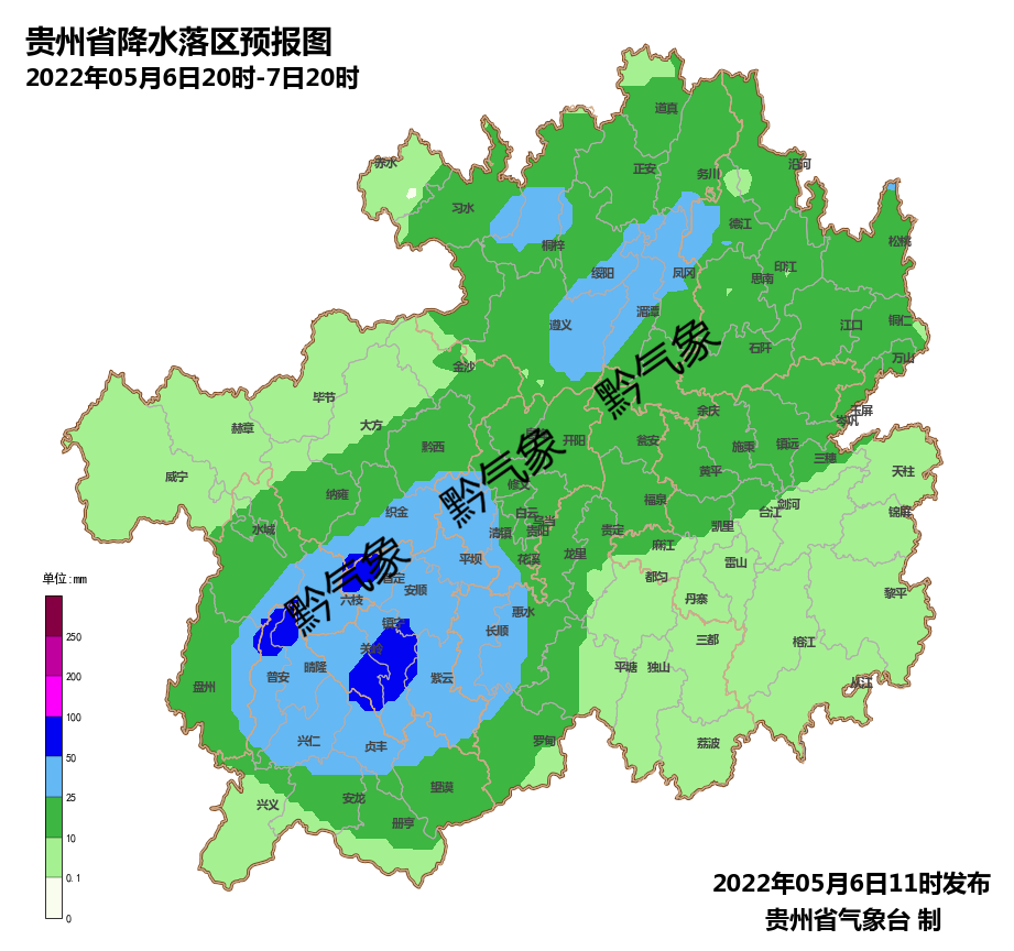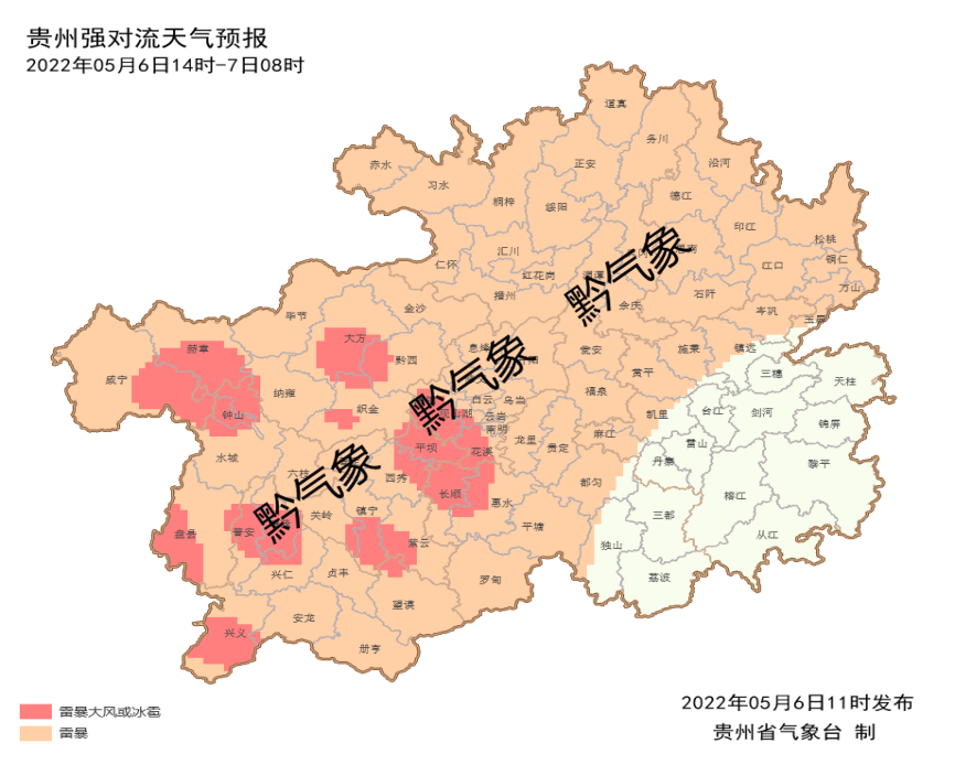 今天午后到明天白天,全省多云转阴天有阵雨或雷雨,午后到夜间毕节市、六盘水市、贵阳市西部、安顺市、黔西南州、黔南州西部局地有冰雹、大风、短时强降水等强对流天气,省的西部及北部地区有中到大雨,部分乡镇有暴雨。