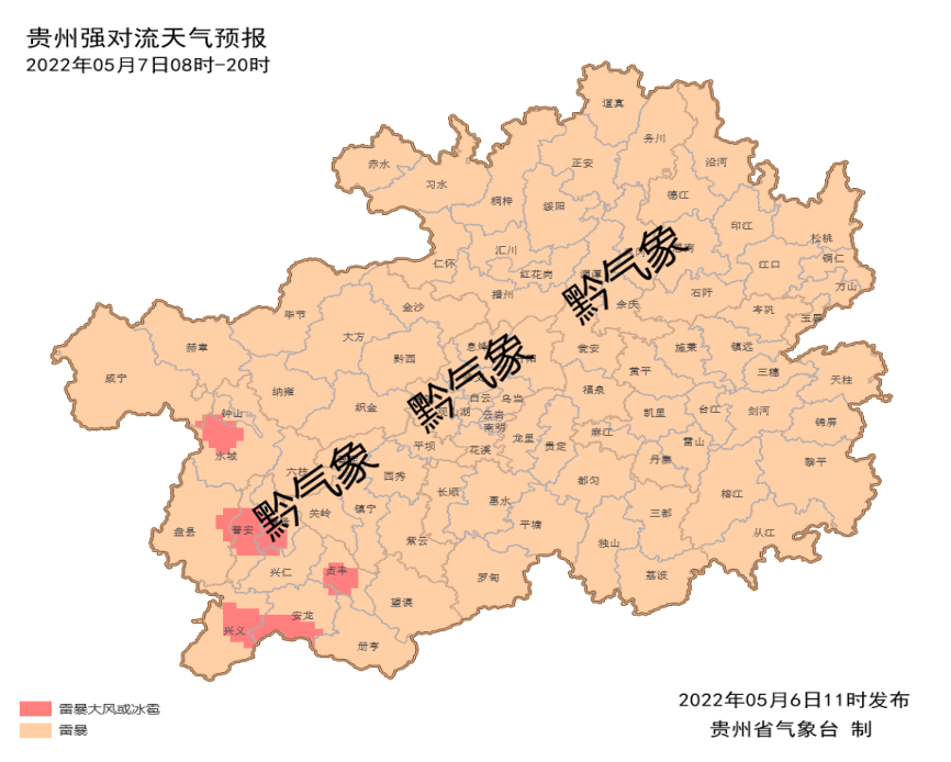 5月6日14时-5月7日08时,全省大部有雷电,省的西部和北部地区有短时强降水,西部有冰雹、雷暴大风等强对流天气。