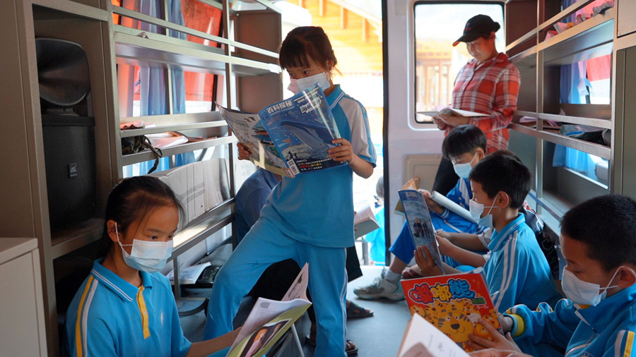 “我们村委会的阅览室一至六年级的书籍比较少,满足不了学生们的需求。今天,县图书馆把流动图书车开到盘街村来,让我们村的青少年有了更好的学习机会。”思旸镇盘街村党支部书记、村委会主任边兴鹏说。
