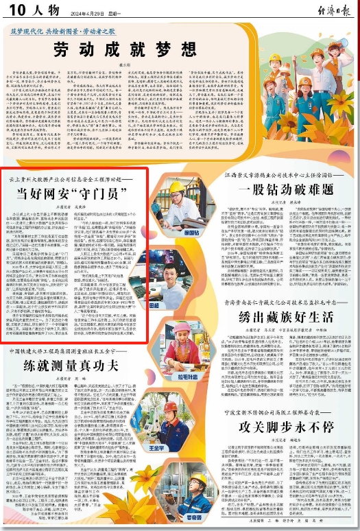 入职云上贵州大数据产业公司4年来,田超牵头研发的软件工具超过20个。田超与团队编写的漏洞预警通告达600余篇,将隐患消除在萌芽状态,提升了网络安全运行水平。