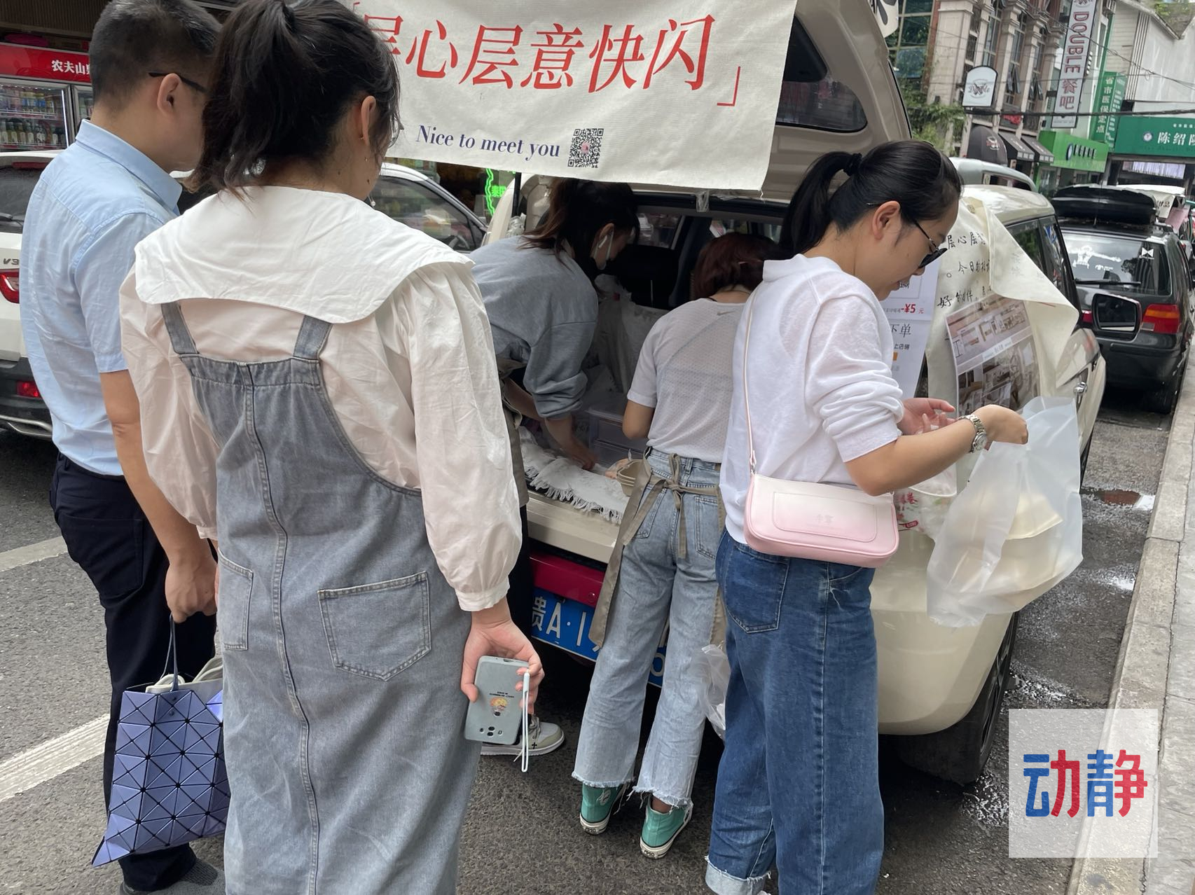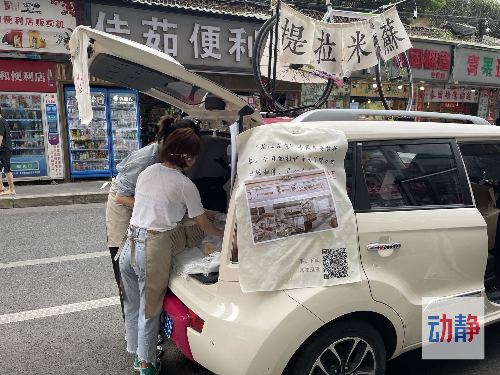 一辆圆滚滚的两厢小汽车,打开后备箱,草莓蛋糕、芒果蛋糕、提拉米苏一应俱全,停在哪哪就是消费的主场。