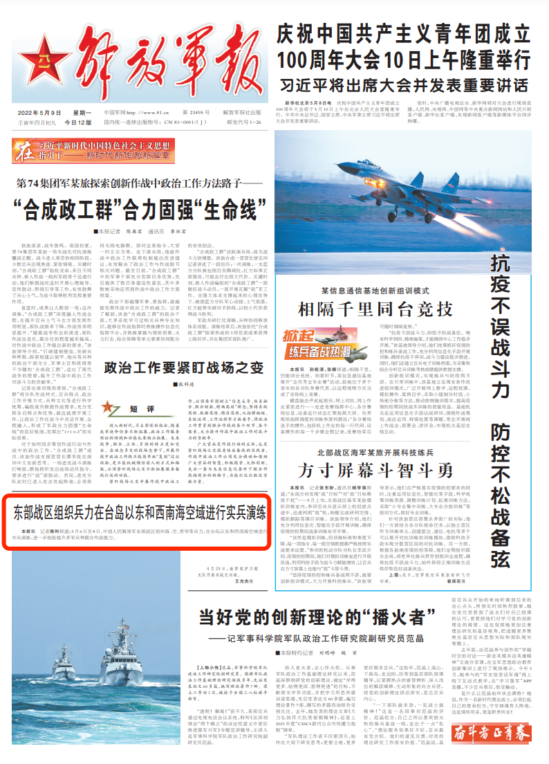5月6日至8日,中国人民解放军东部战区组织海、空、常导等兵力,在台岛以东和西南海空域进行实兵演练,进一步检验提升多军兵种联合作战能力。