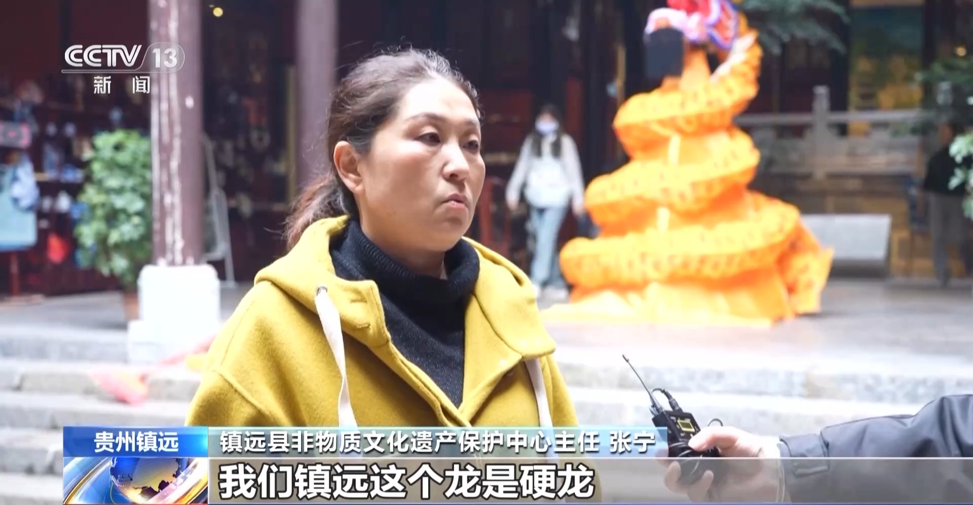 镇远县非物质文化遗产保护中心主任 张宁:我们镇远这个龙是硬龙,它是用竹篾条编扎的,玩的时候上下腾飞,雄俊昂扬。一般龙都有三十多米,这次筹备的龙有十三节,十五个精壮汉子才能把龙舞起来。