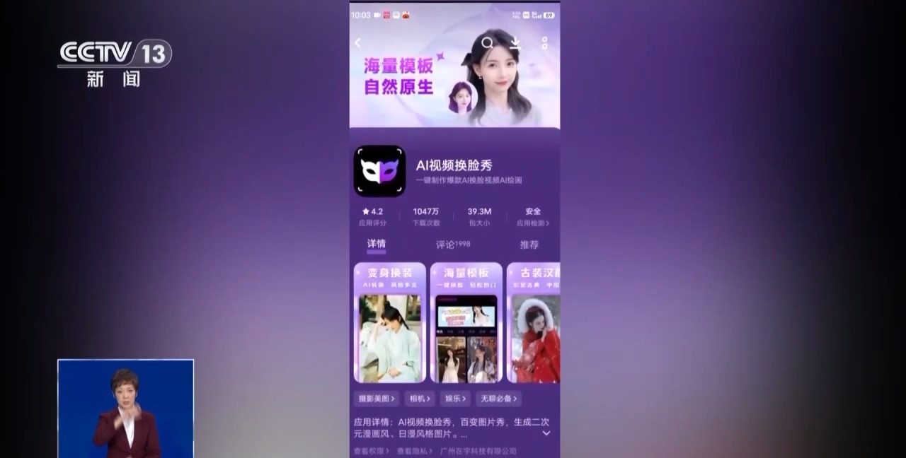 中国网络空间安全协会人工智能安全治理专委会专家 薛智慧:如果从娱乐大众的角度来说的话,现在市面上也有很多的这些软件和工具,能够达到AI换脸的效果,但是仿真度只有六七分的样子,大众直接就能看出来。但是如果要生成一个诈骗视频来说话,就要生成咱们仿真度极高的这种点对点视频。