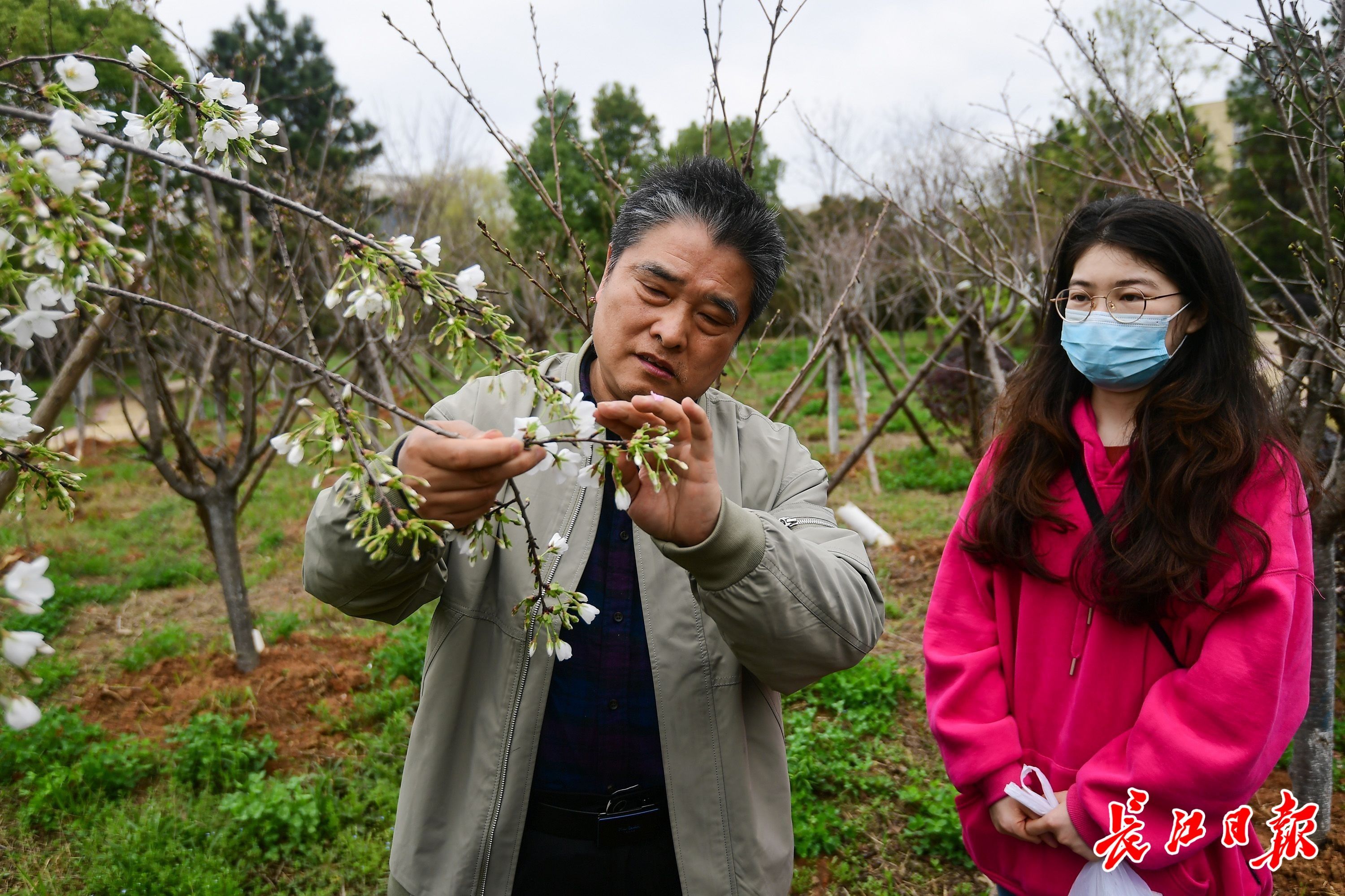 这片樱花园实际是片樱花种质资源圃,是江汉大学生命科学学院蒋细旺教授的“实验室”,种植着他研发的60个樱花品种或种类。