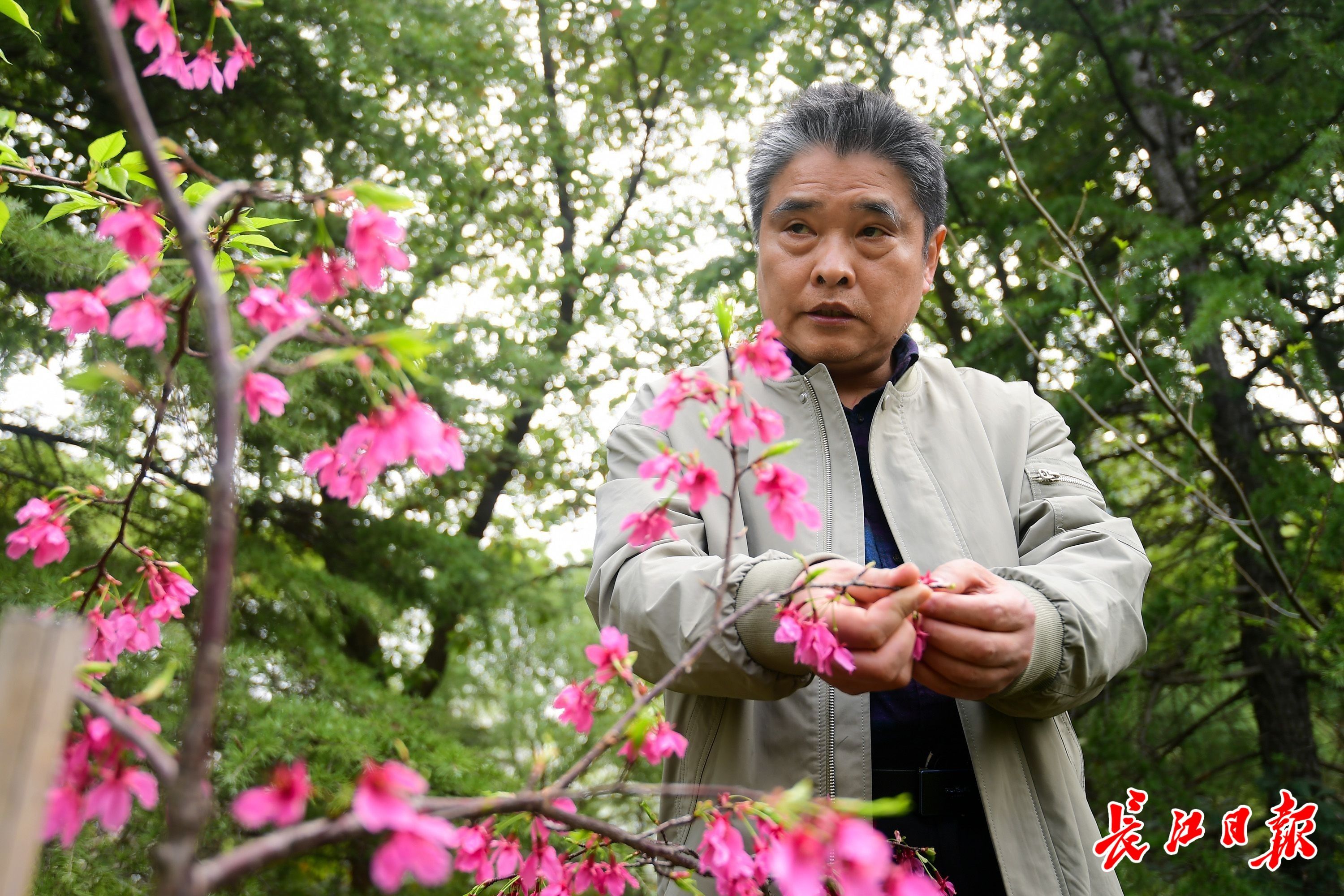 这60个品种或种类的樱花都是他研发杂交的新樱材料,从2月到5月接续开放。蒋细旺在此的主要工作,就是对樱花的起源、亲缘关系、系统进化、种质资源快速繁殖与育种以及推广应用等方面的研究工作。