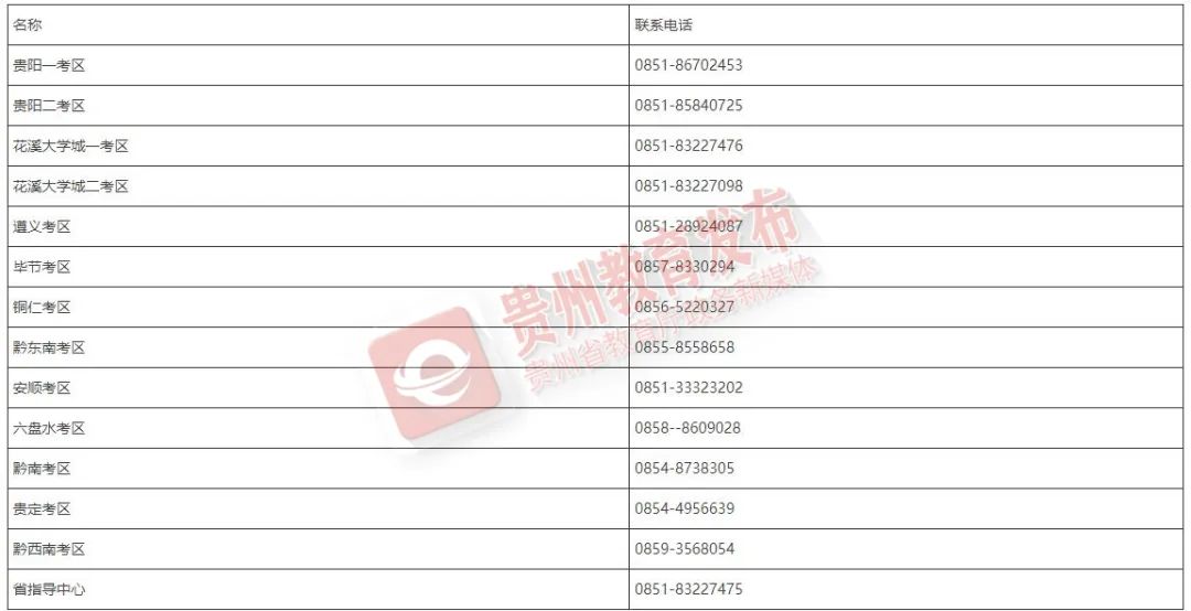2.特殊教育只在“花溪大学城一考区”开考,其他考区均不设该类别考试。