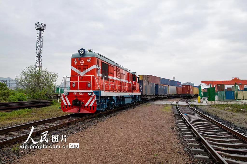 2023年4月4日上午,一列满载100标箱小商品、陶瓷制品、电动滑板车、日用百货等中国特色商品的“义新欧”中欧班列从浙江省义乌铁路口岸货场发车,经霍尔果斯口岸出境驶往中亚五国。