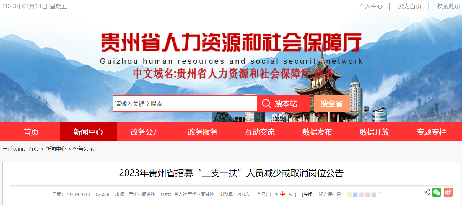 2023年贵州省招募“三支一扶”人员减少或取消岗位公告