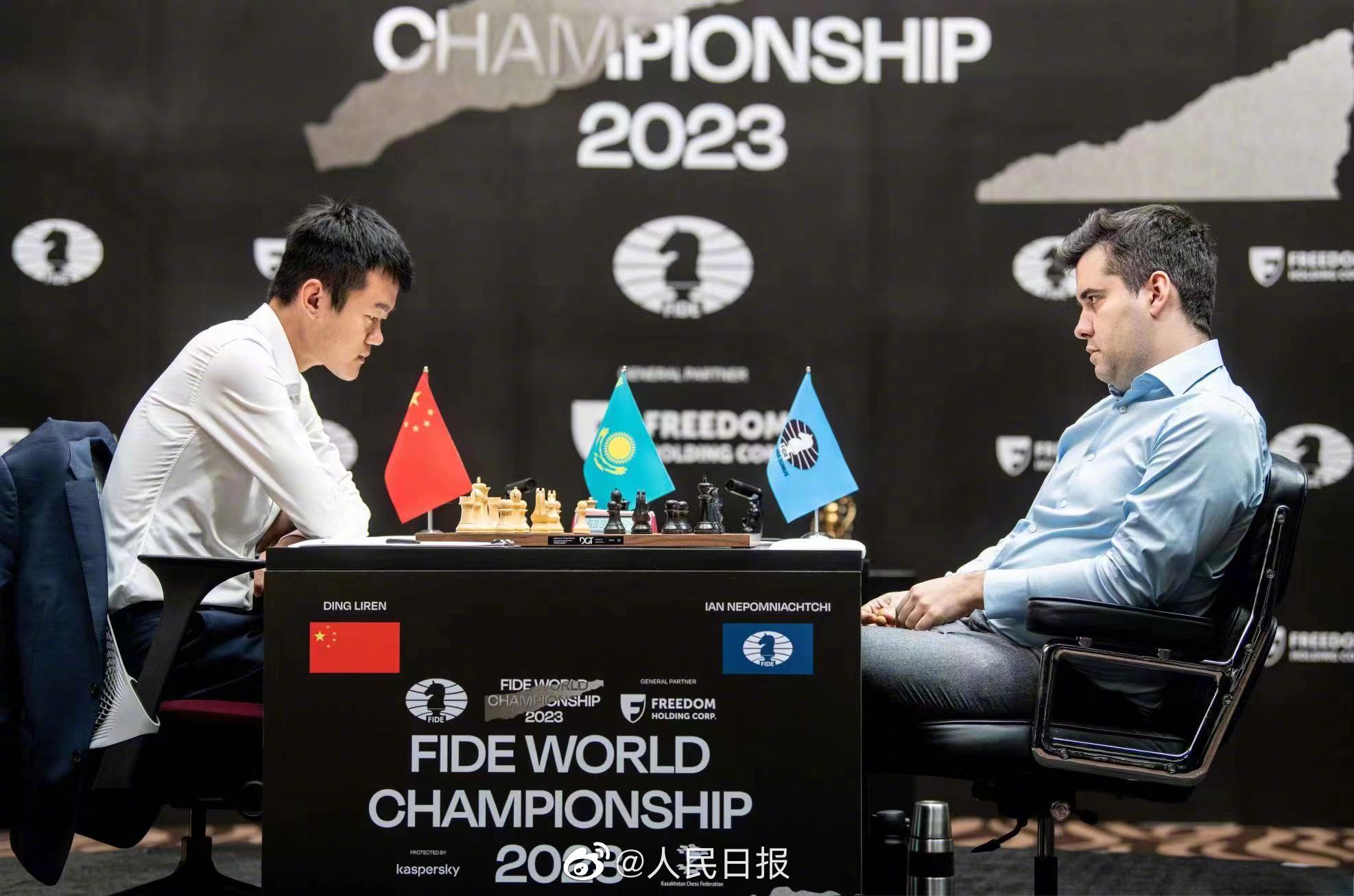 ▲在2023国际棋联世界冠军赛中,中国棋手丁立人经过快棋加赛,战胜俄罗斯棋手涅波姆尼亚奇,勇夺国际象棋男子个人世界冠军。
