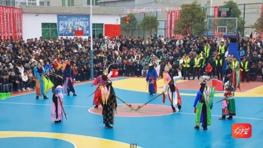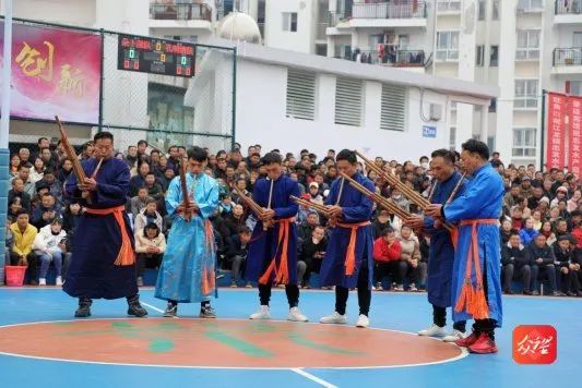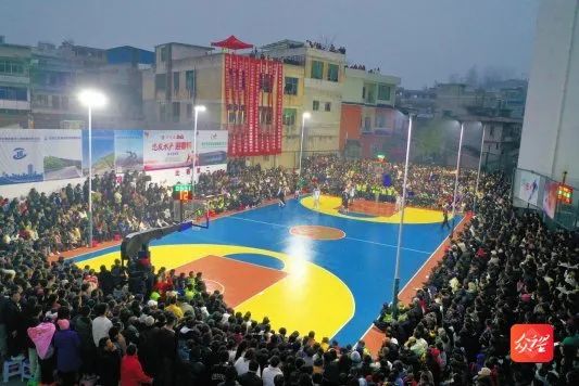 决赛当天虽然飘着绵绵细雨,但现场观众依旧欢声雷动。比赛现场,球员们精湛的球技为父老乡亲们上演了一场场精彩比赛,配合诙谐幽默、接地气的现场解说,场下观众掌声不断,叫好声不绝于耳。比赛间隙时间,被列入国家非遗名录的铜鼓十二调、苗族芦笙舞和地戏等民族歌舞表演更是在现场刮起了一股“最炫民族风”。群众在观看紧张刺激的篮球比赛的同时,还在家门口欣赏了一场艺术盛宴。
