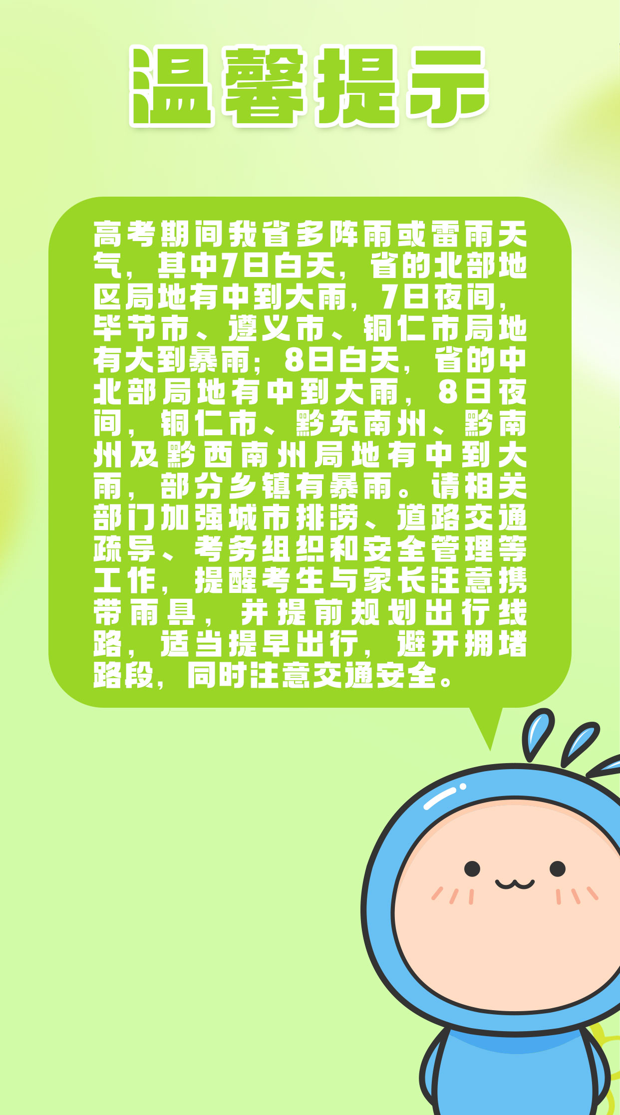 高考气象站丨今夜贵州这些地方有暴雨、大暴雨