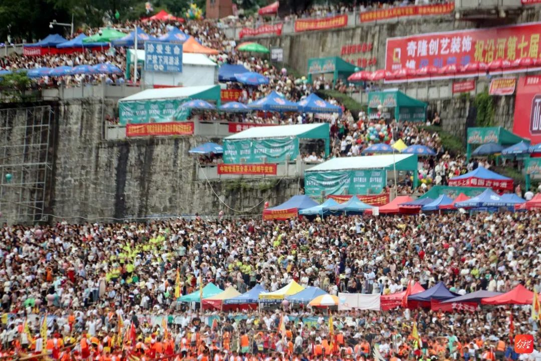 万民欢聚庆端午,龙舟竞渡展雄姿。比赛将进行5个多小时,不论是参赛队员奋勇争先竞技精神,还是观赛群众热情洋溢的助威呐喊,都展现了土家儿女的最美风采,展示了“画廊乌江、山歌沿河”最美的魅力。