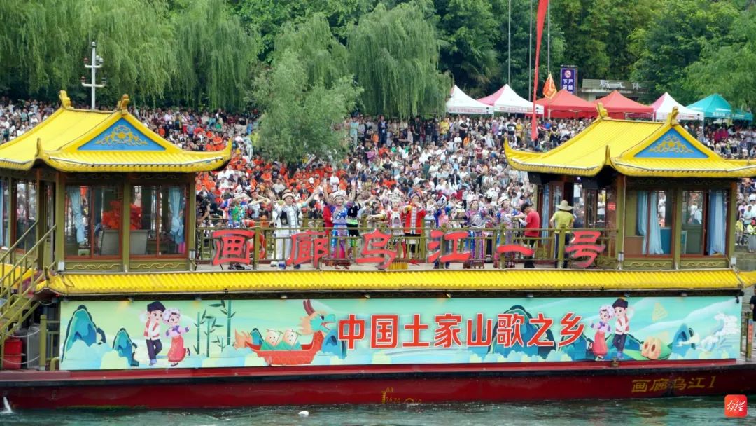 除了精彩的龙舟比赛,现场还设置了“土家山歌排对排”对唱,百名泳儿畅游乌江,江上展演典籍里的屈原,水上专业特技表演,还有农特产品和土家美食展销等。
